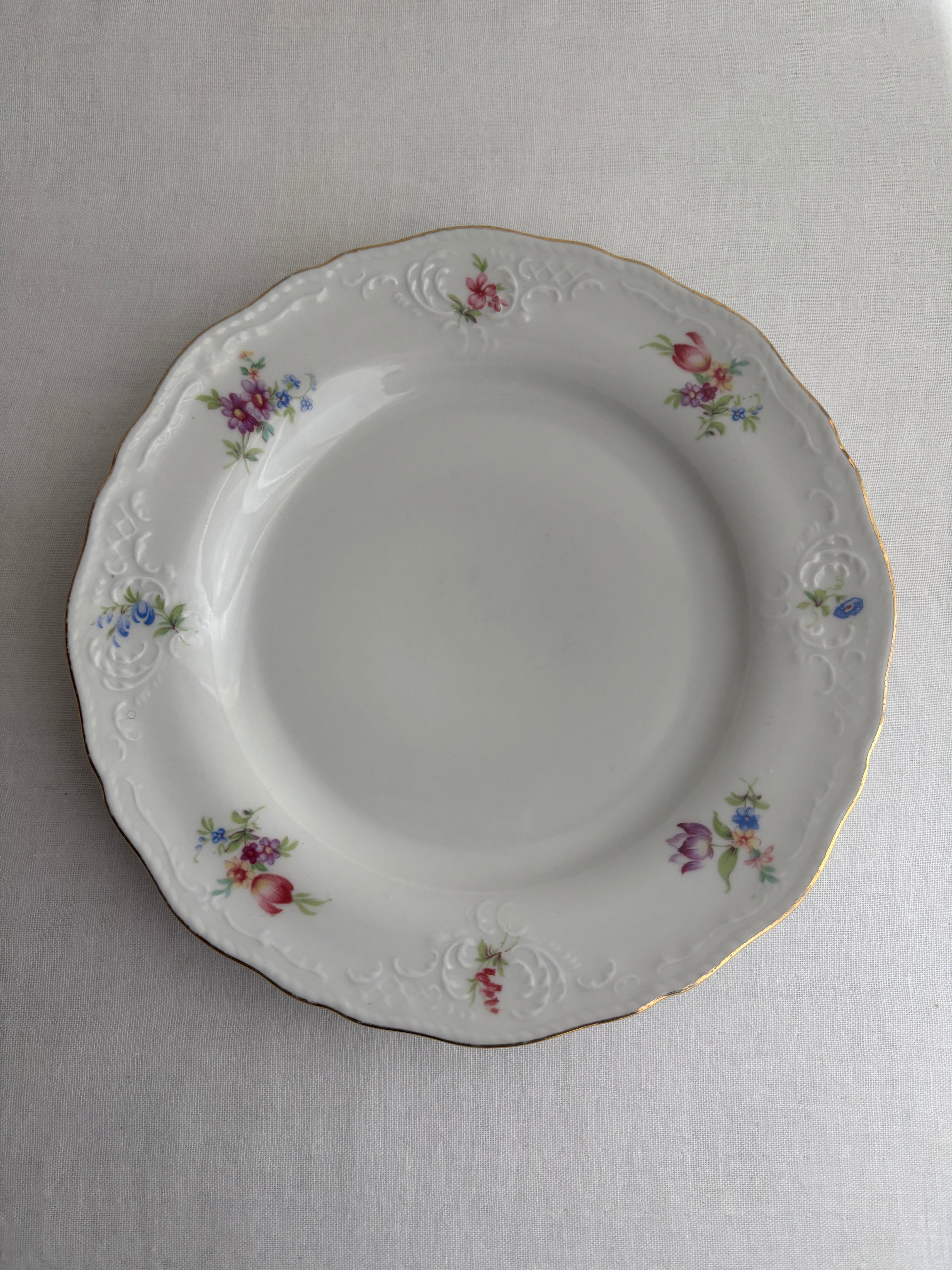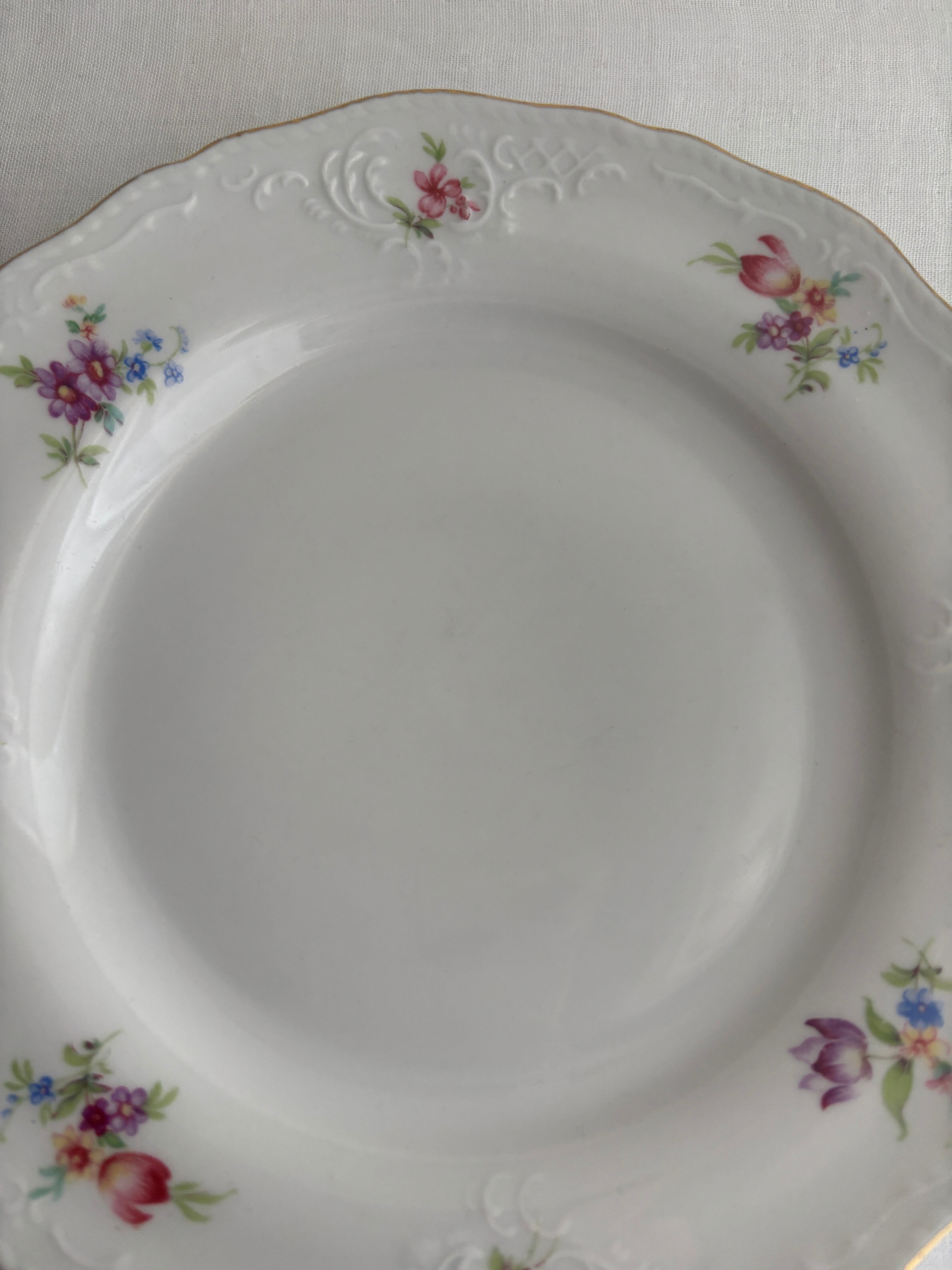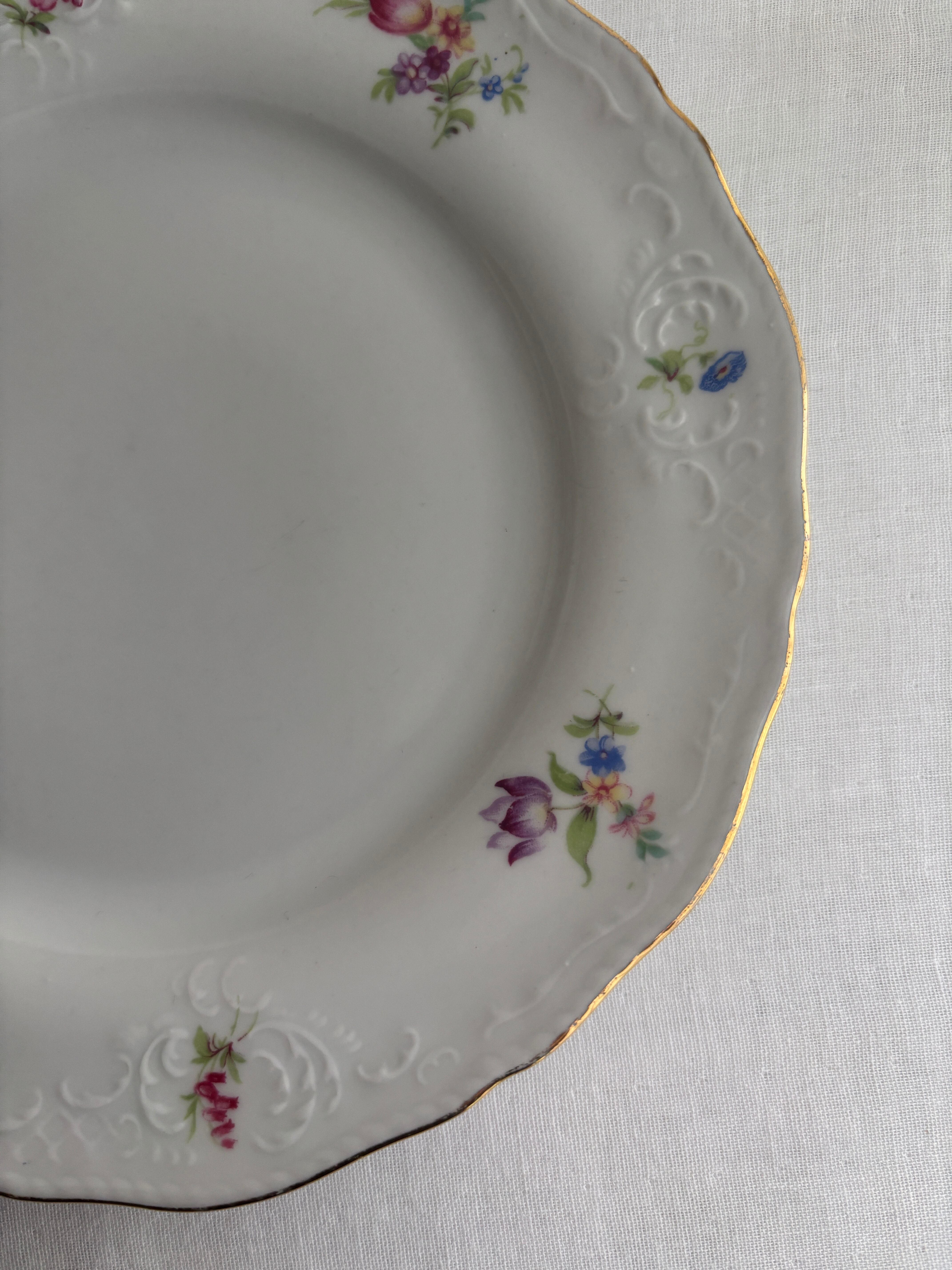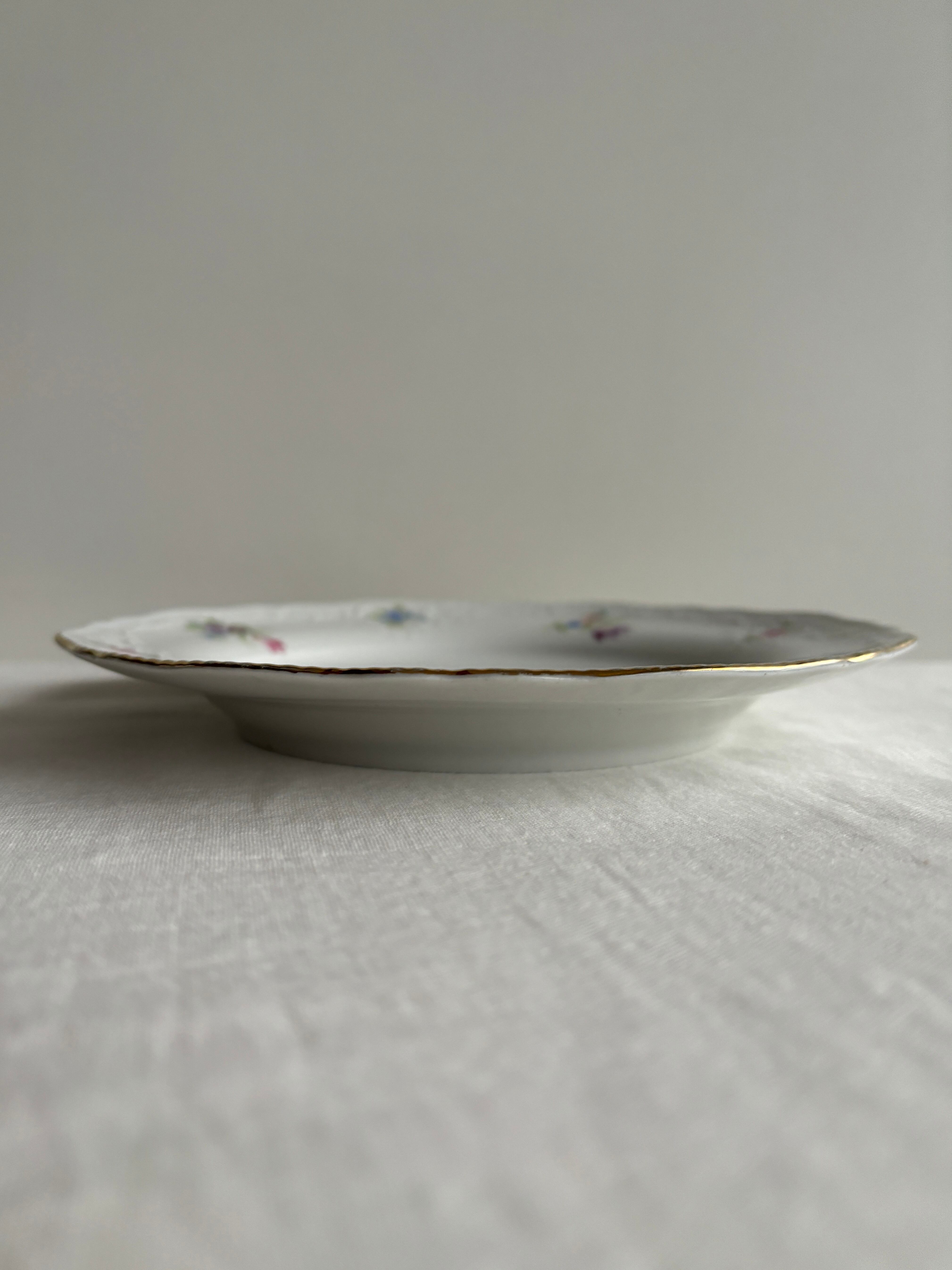 リムのお花とデザインが上品なデザートプレートです。