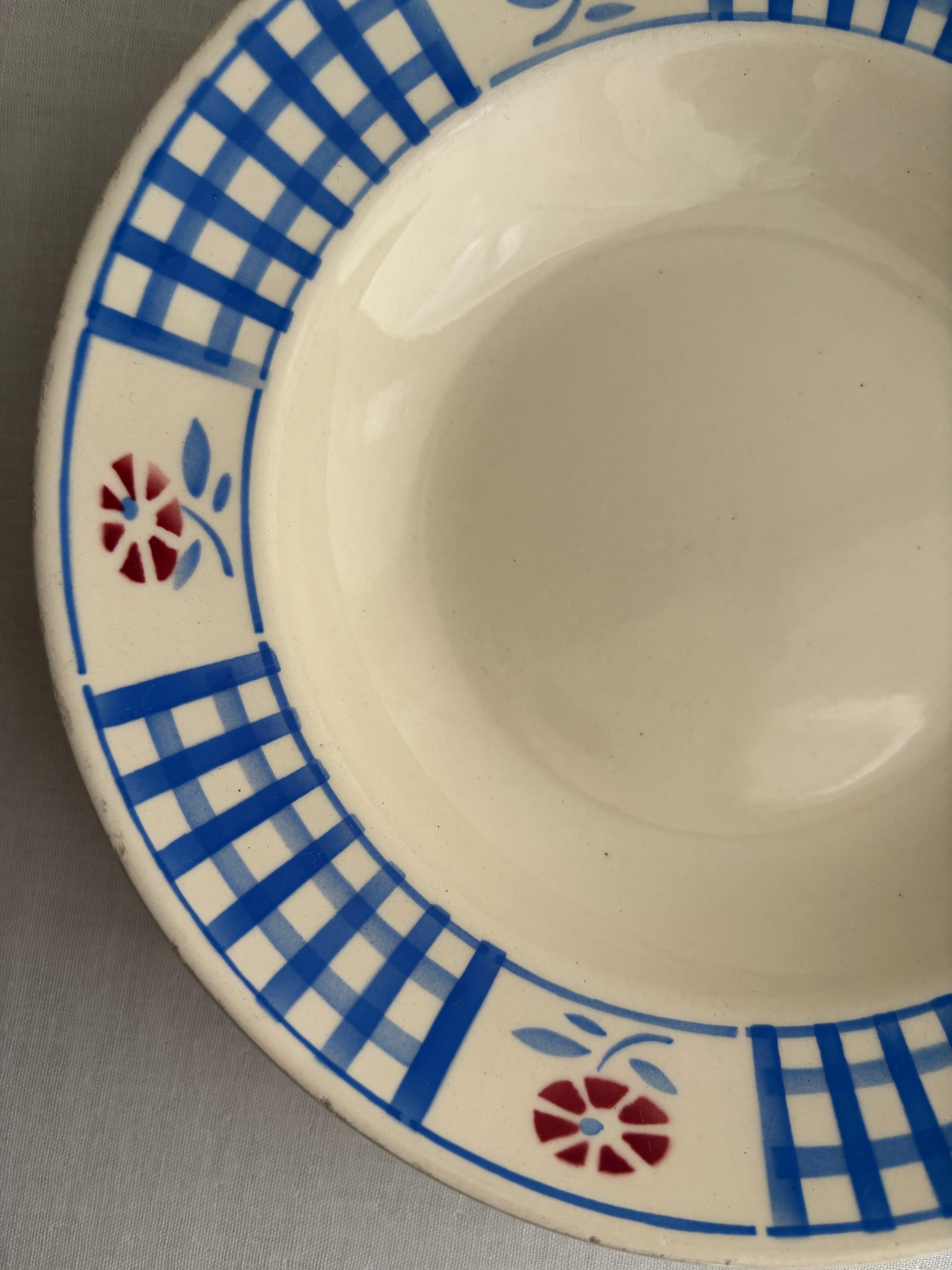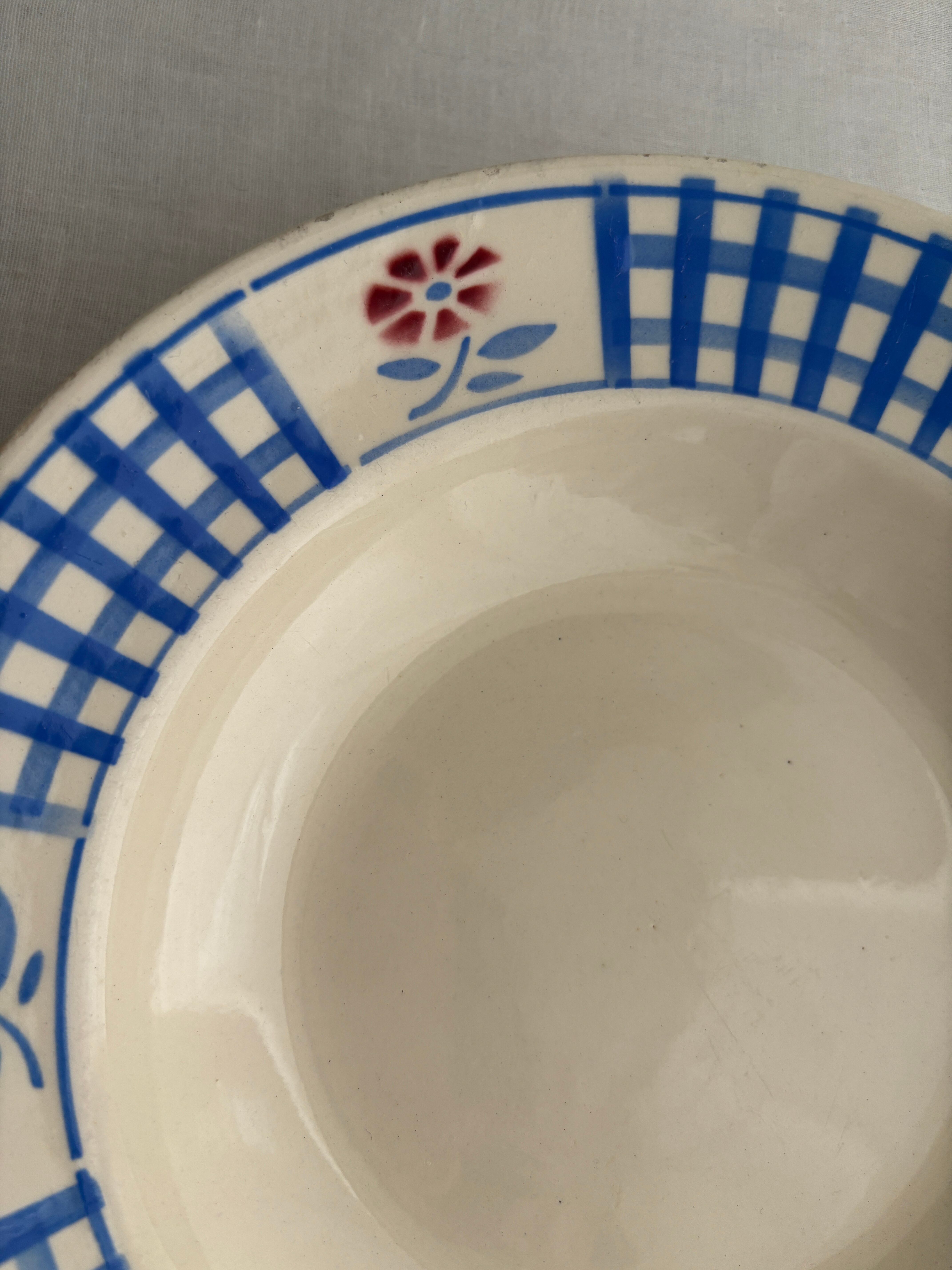 クリーム色にブルーチェックとお花がとっても可愛い…。