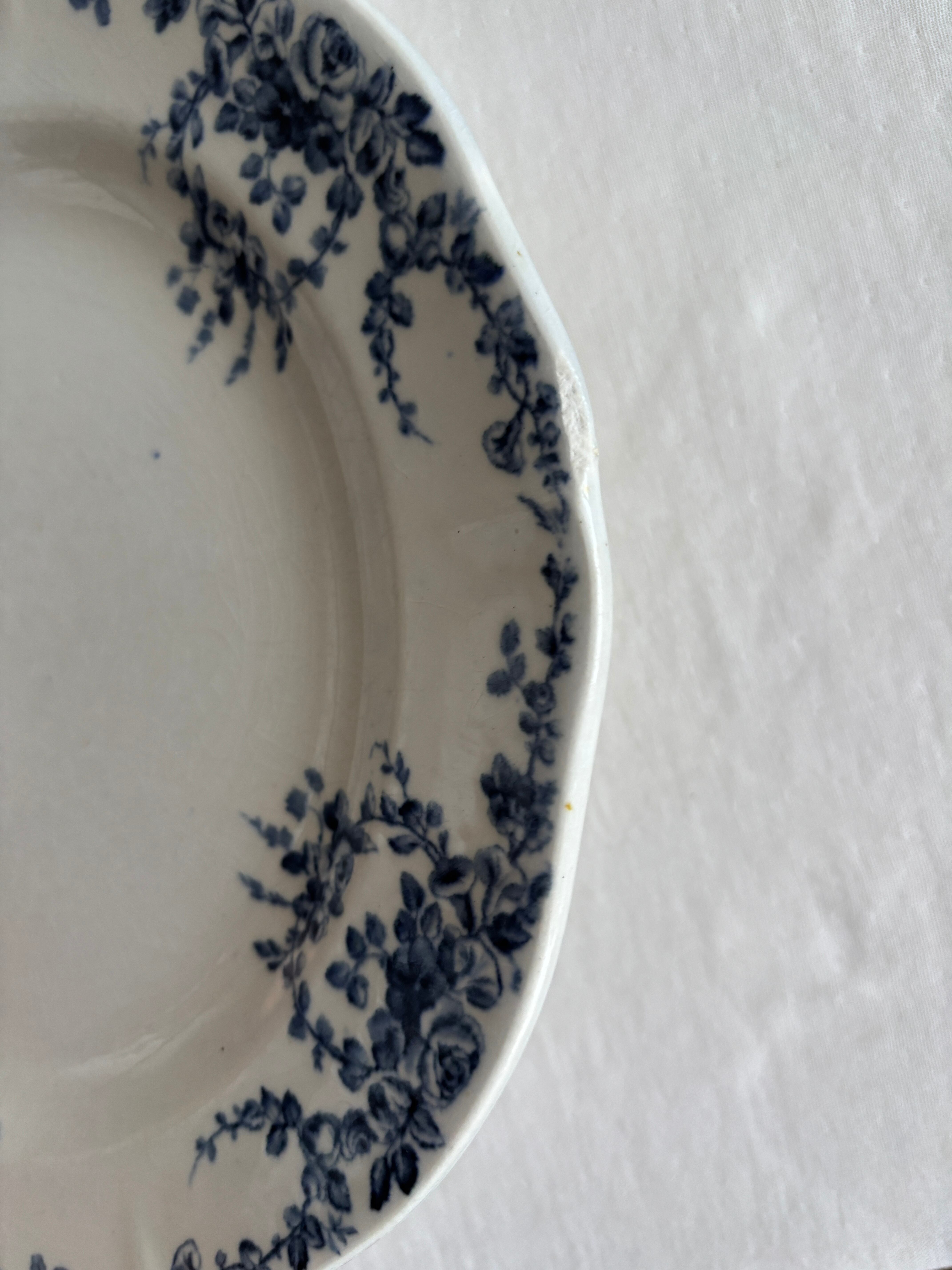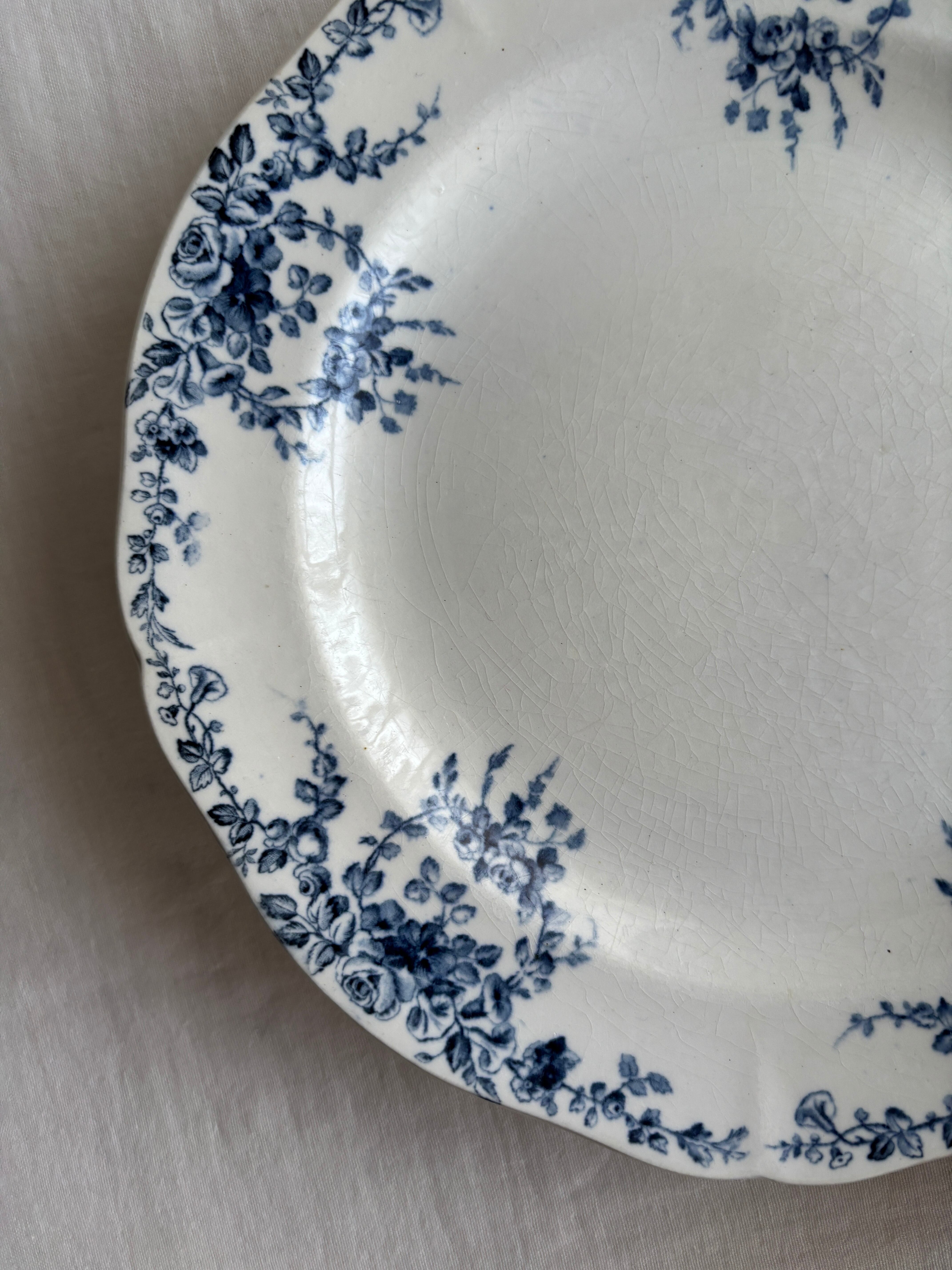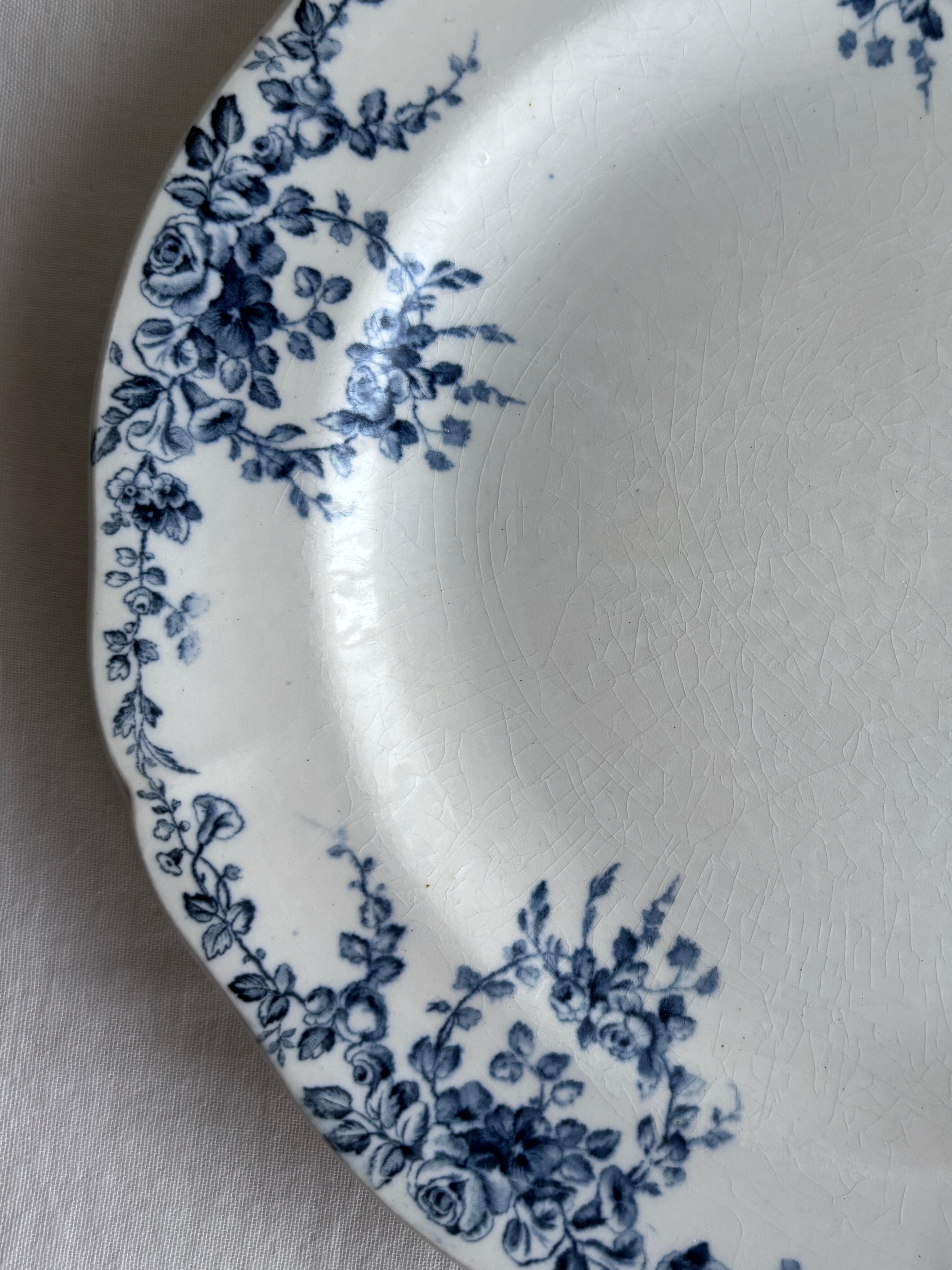 濃いブルーの小さなバラのデザインが上品なディナープレート。