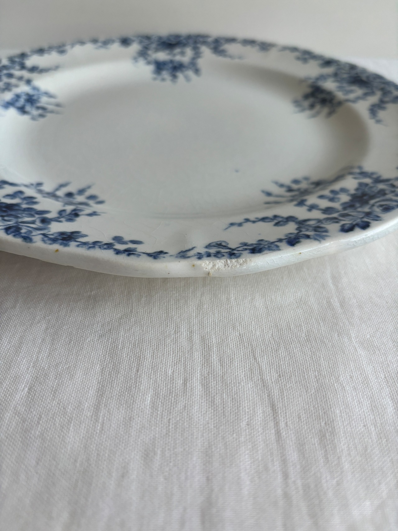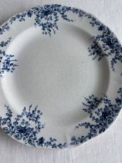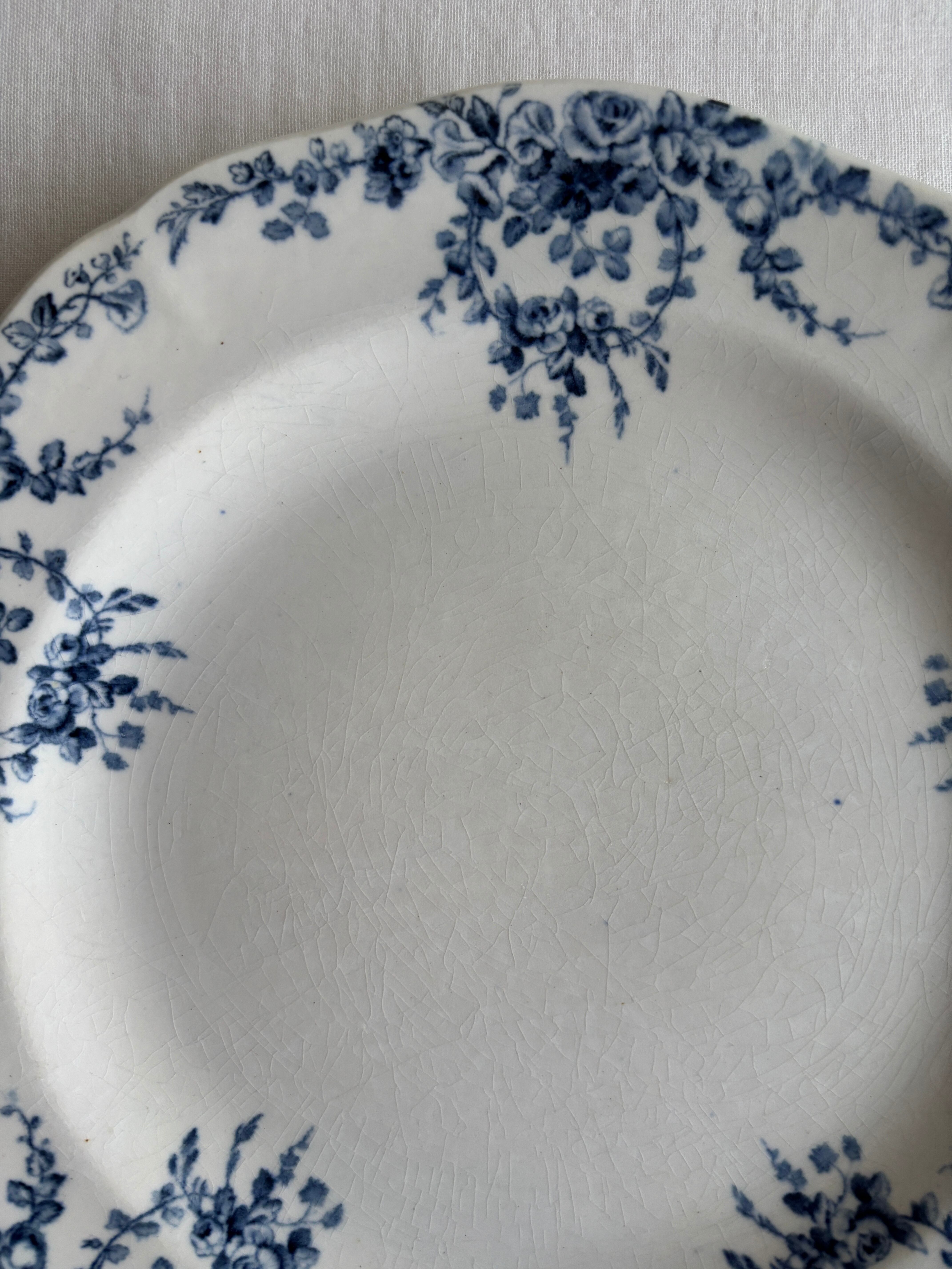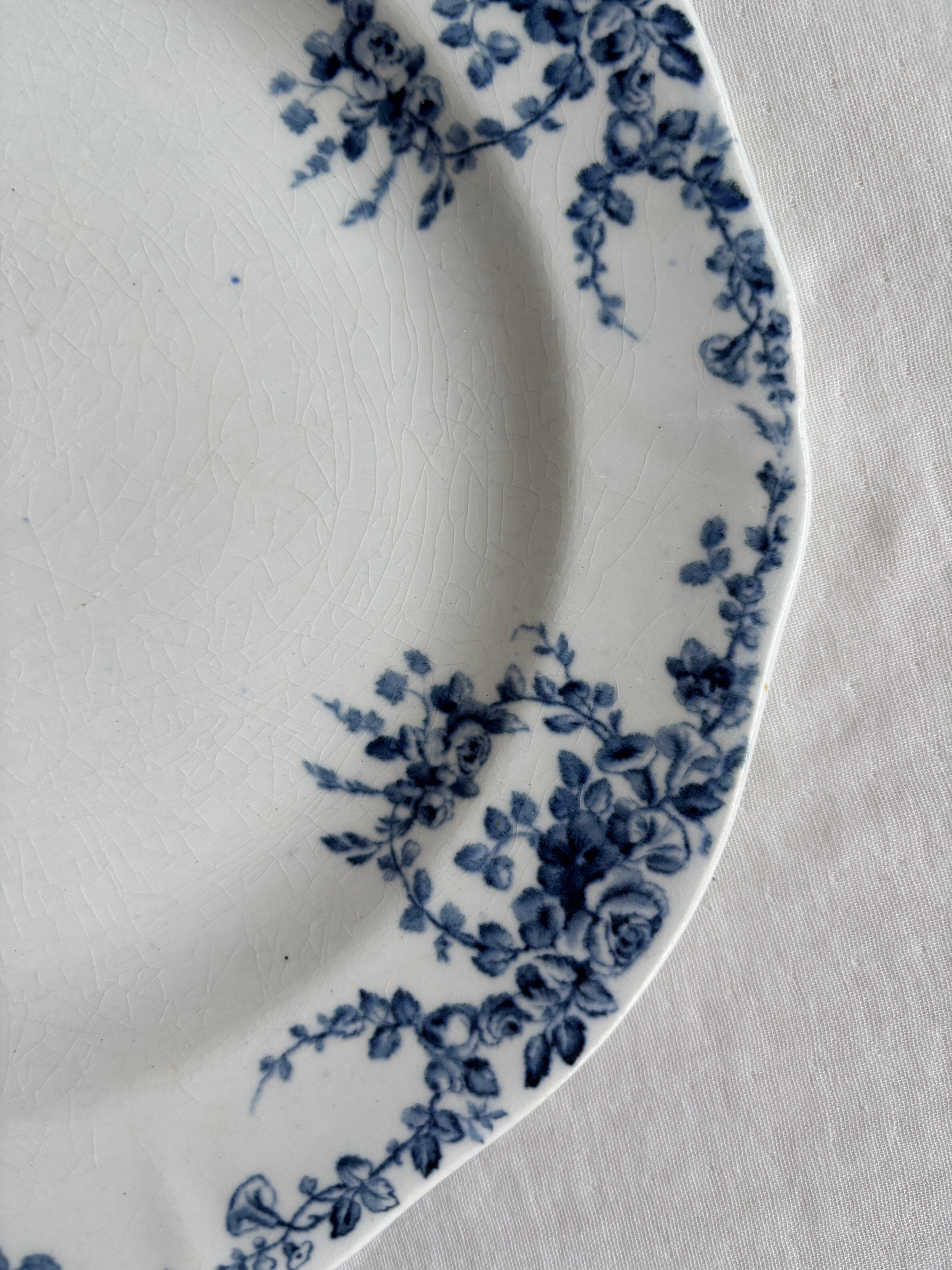 濃いブルーの小さなバラのデザインが上品なディナープレート。