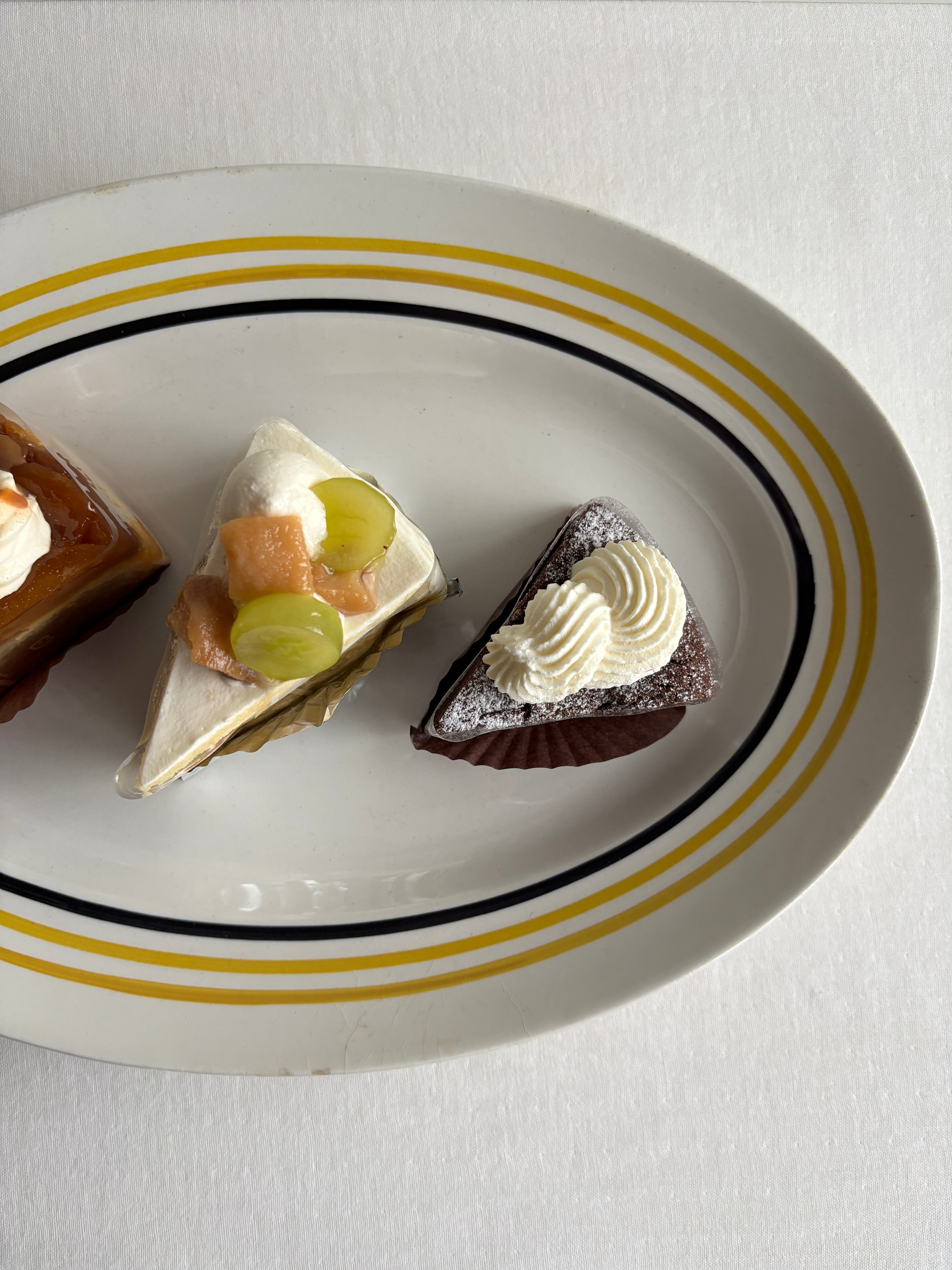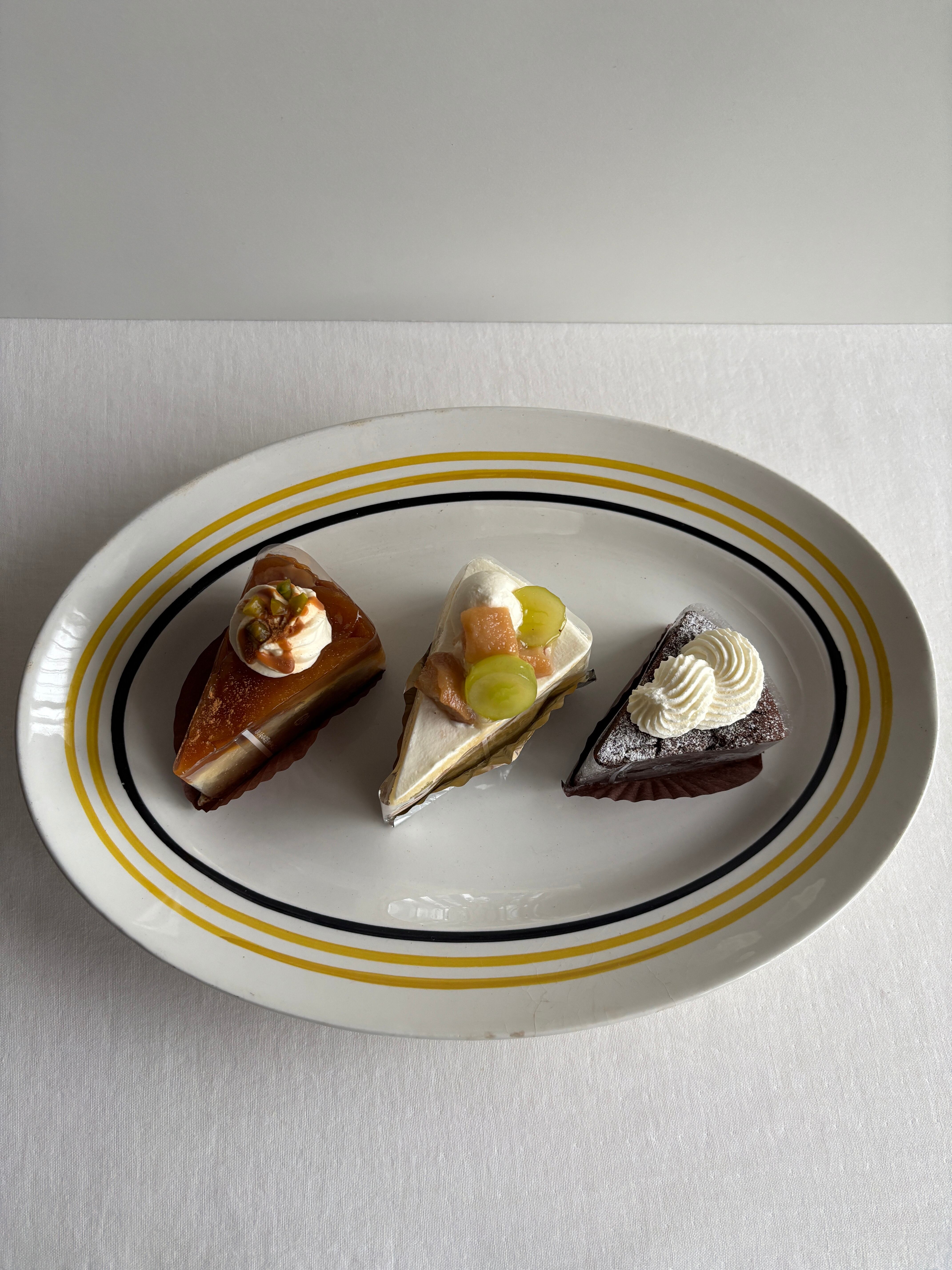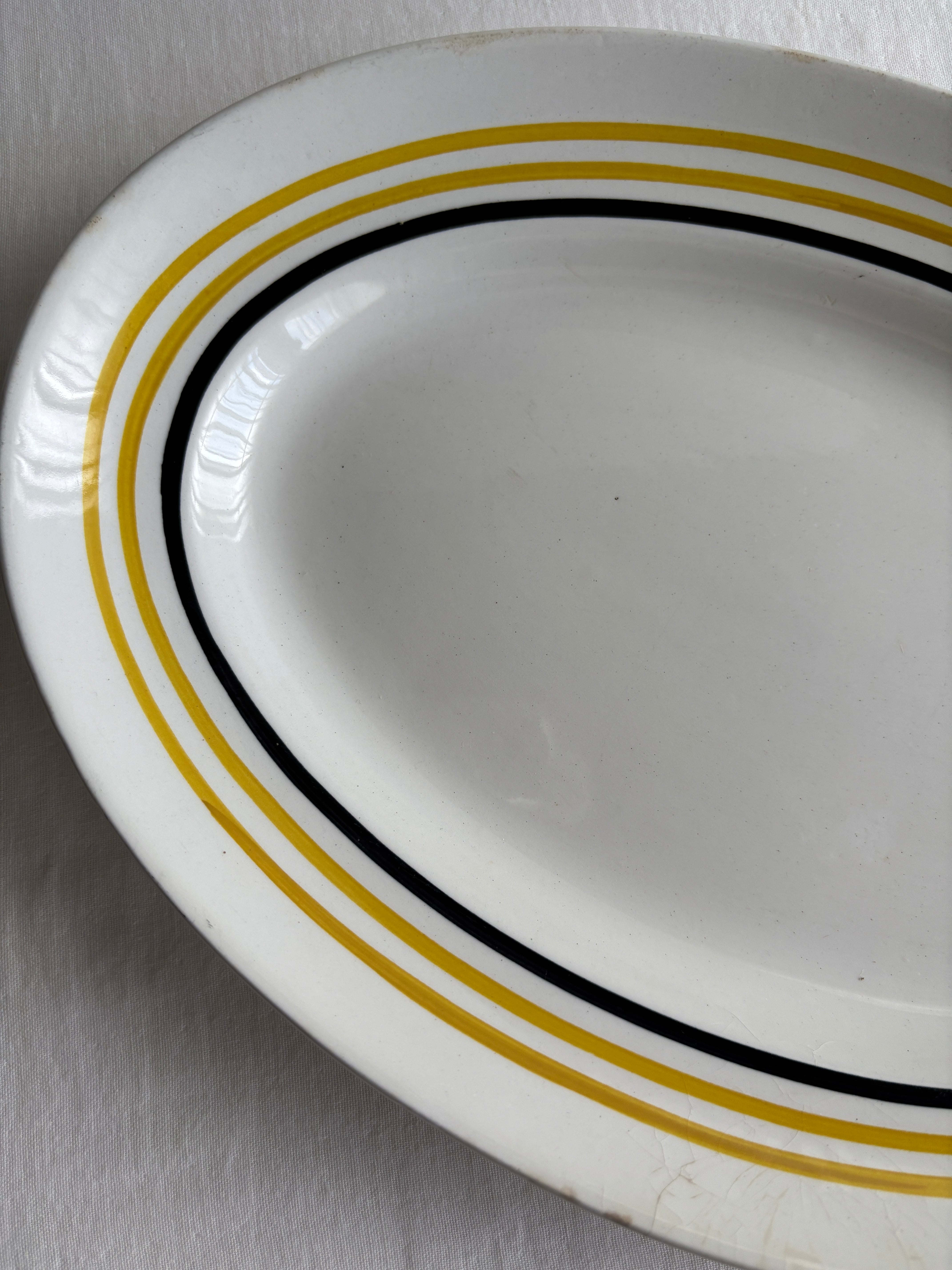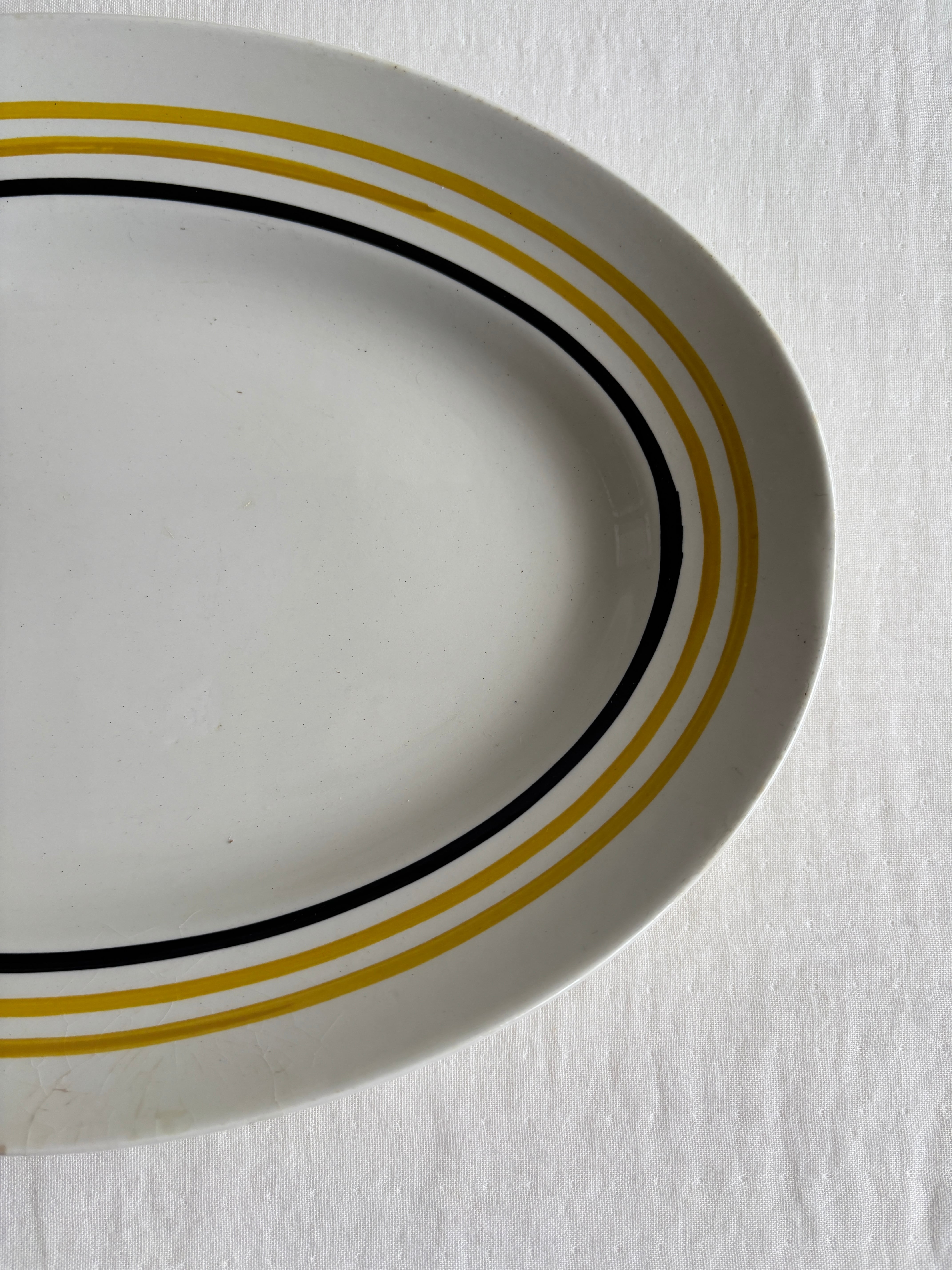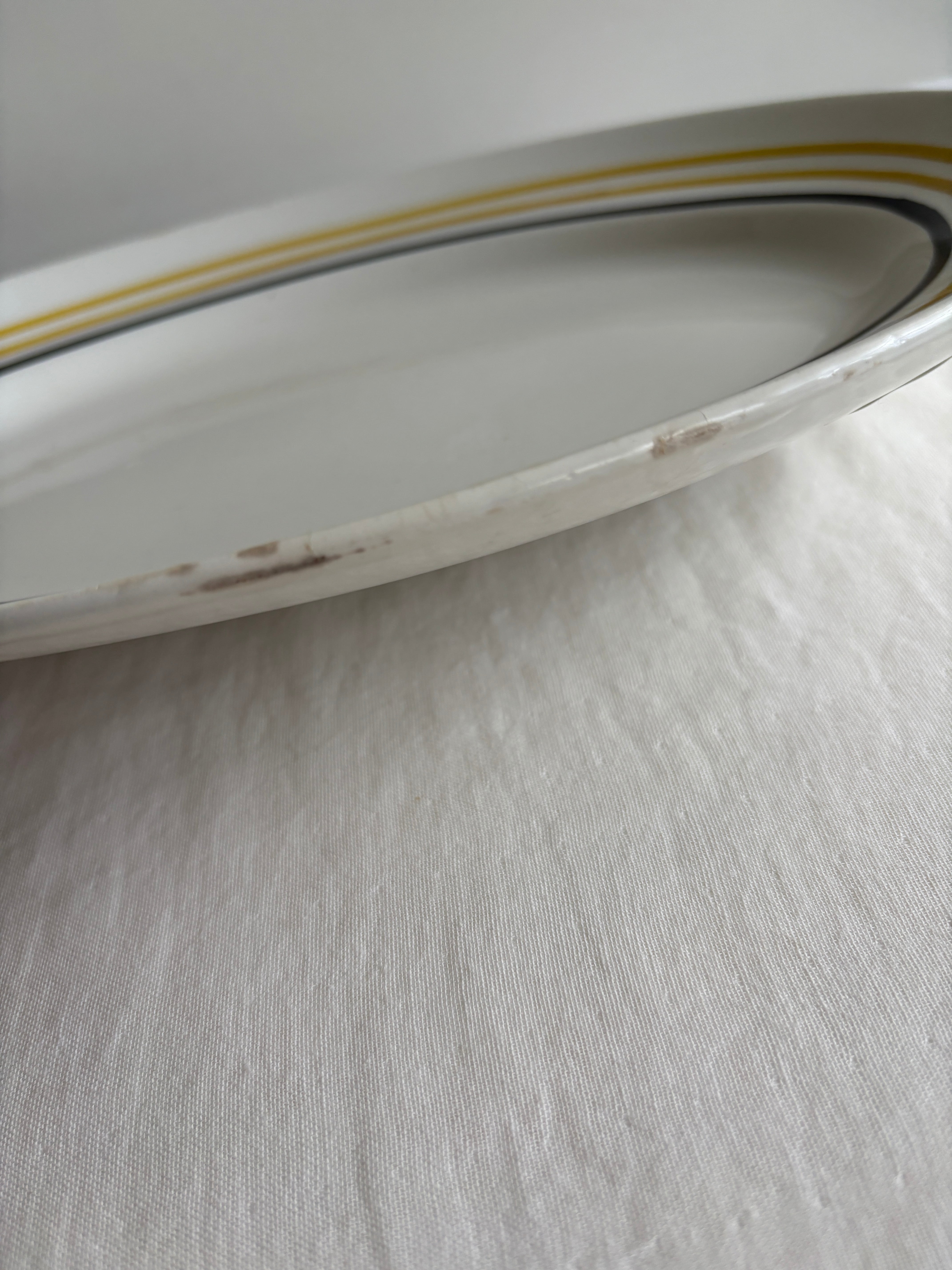 ネイビーとイエローのラインが可愛い、楕円形のオーバルプレートです!