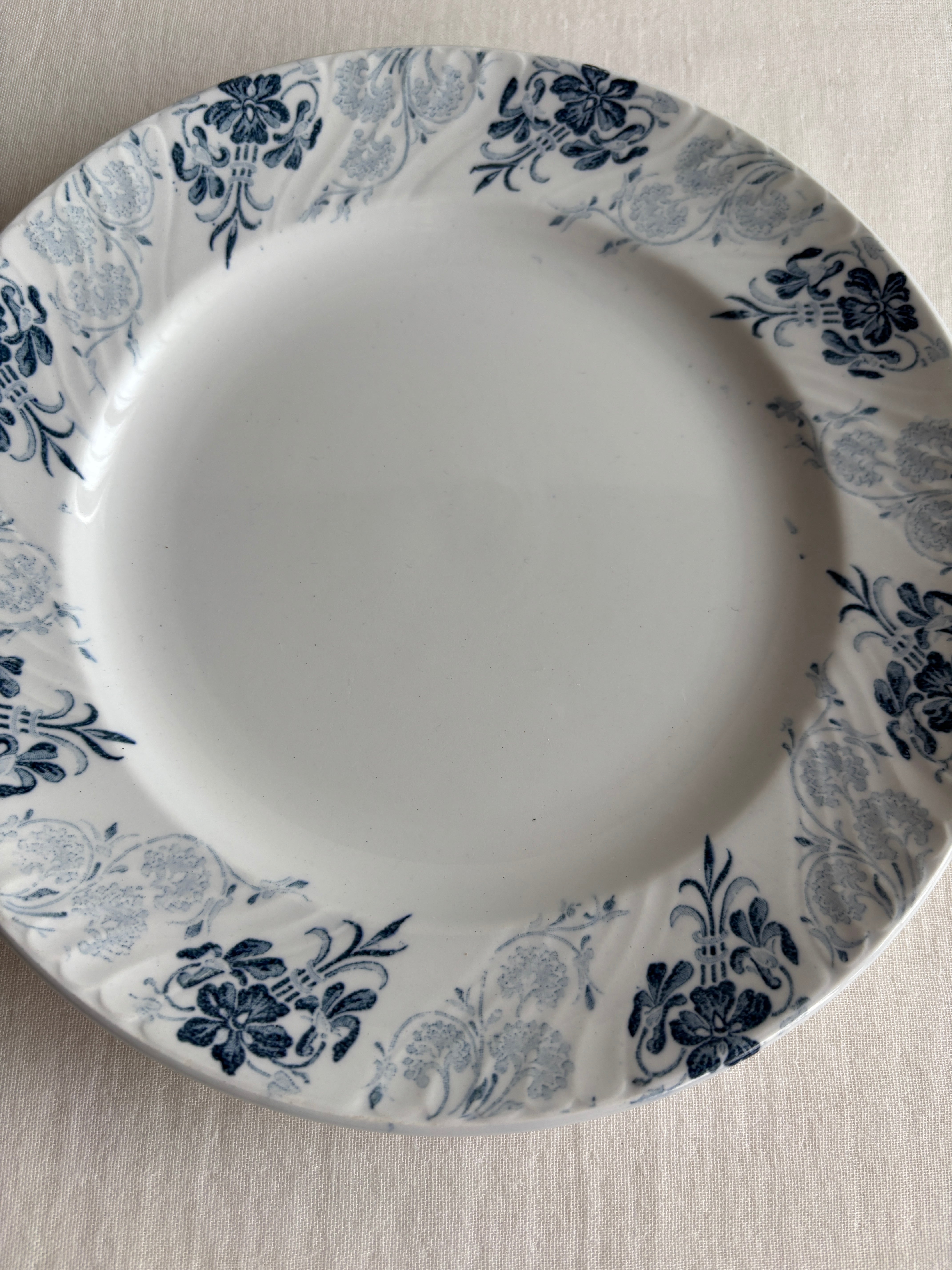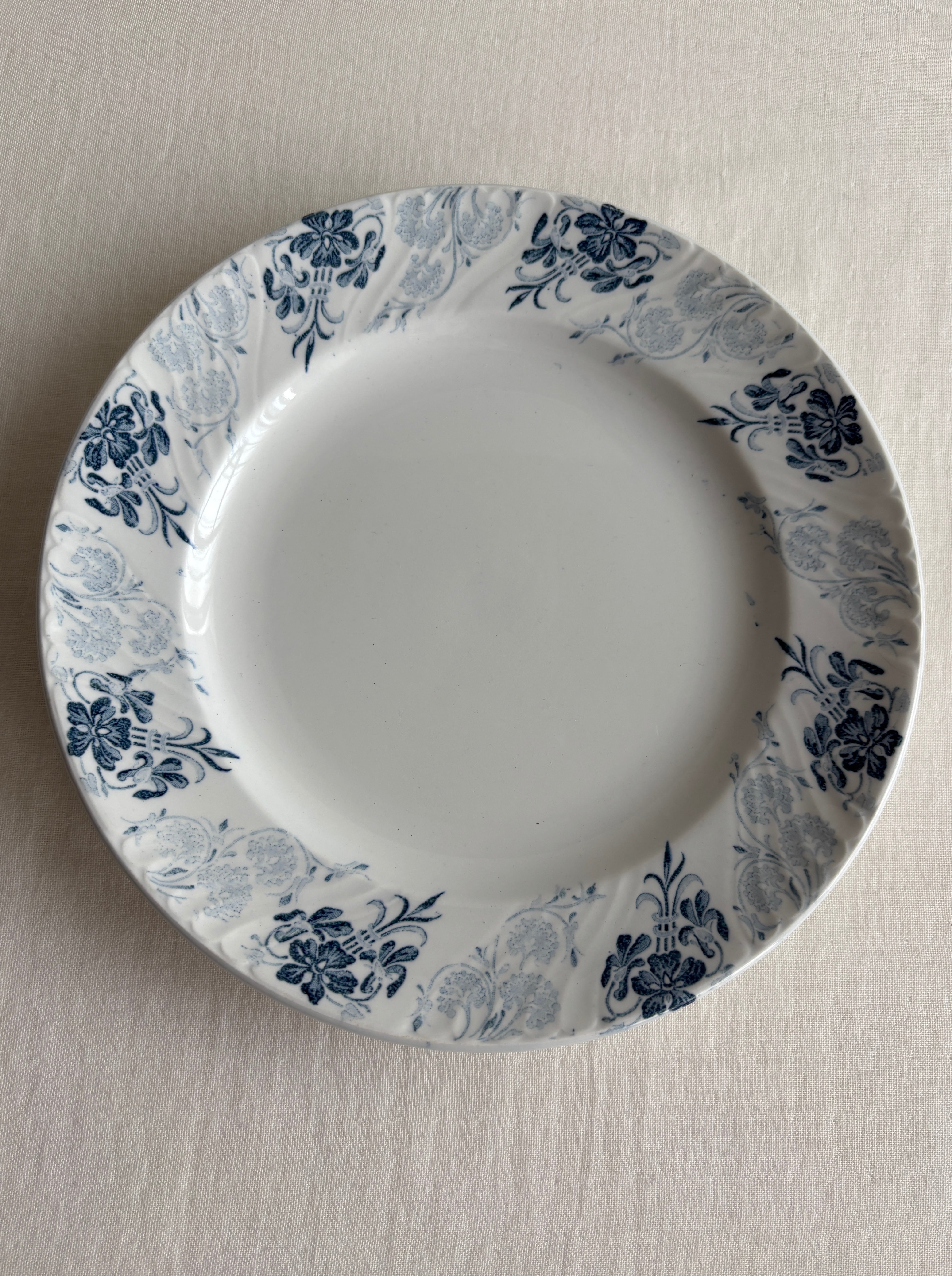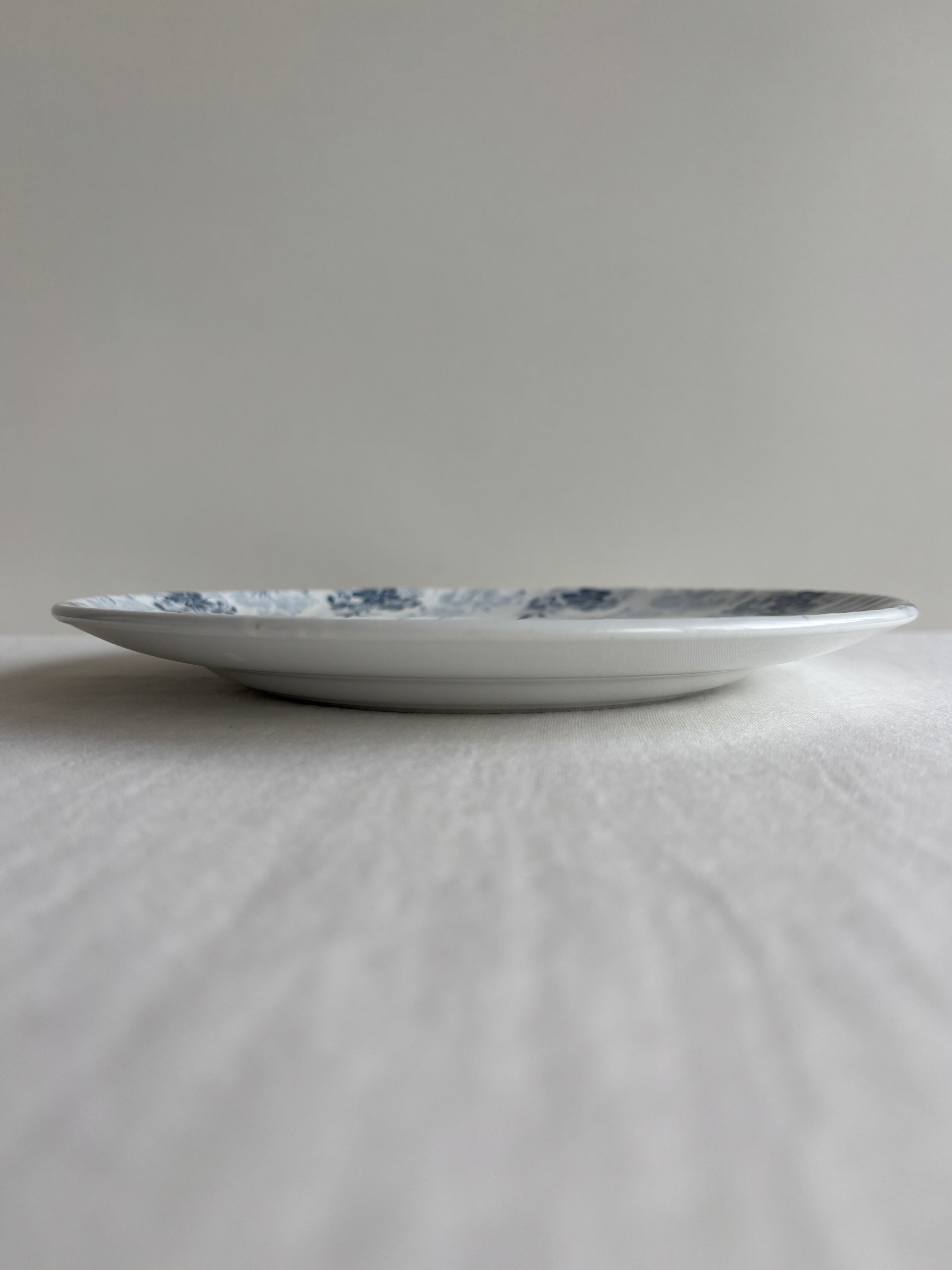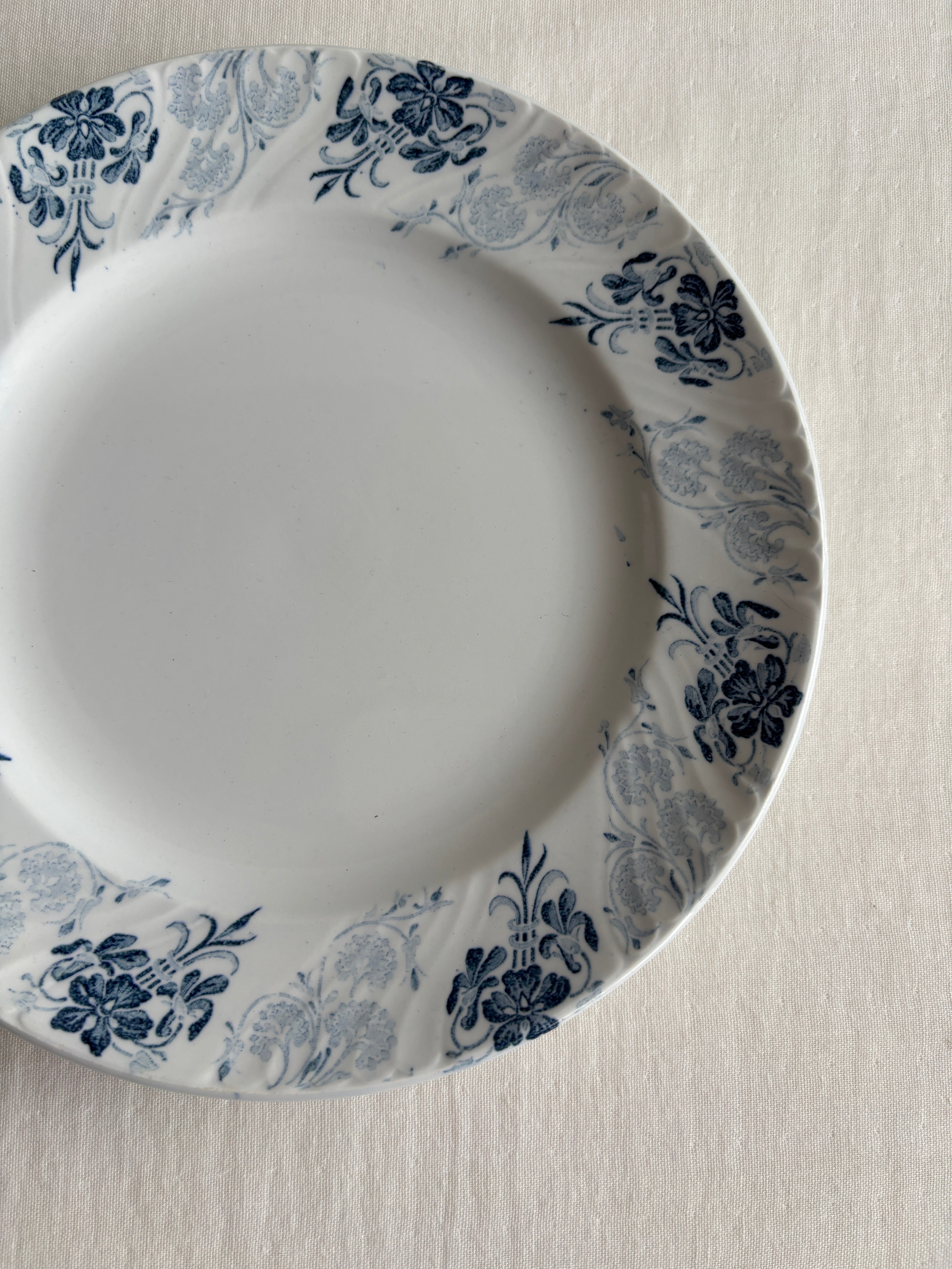 白地に深いブルーと淡いブルーで描かれた花々が美しい、上品で落ち着いた雰囲気のデザートプレート。