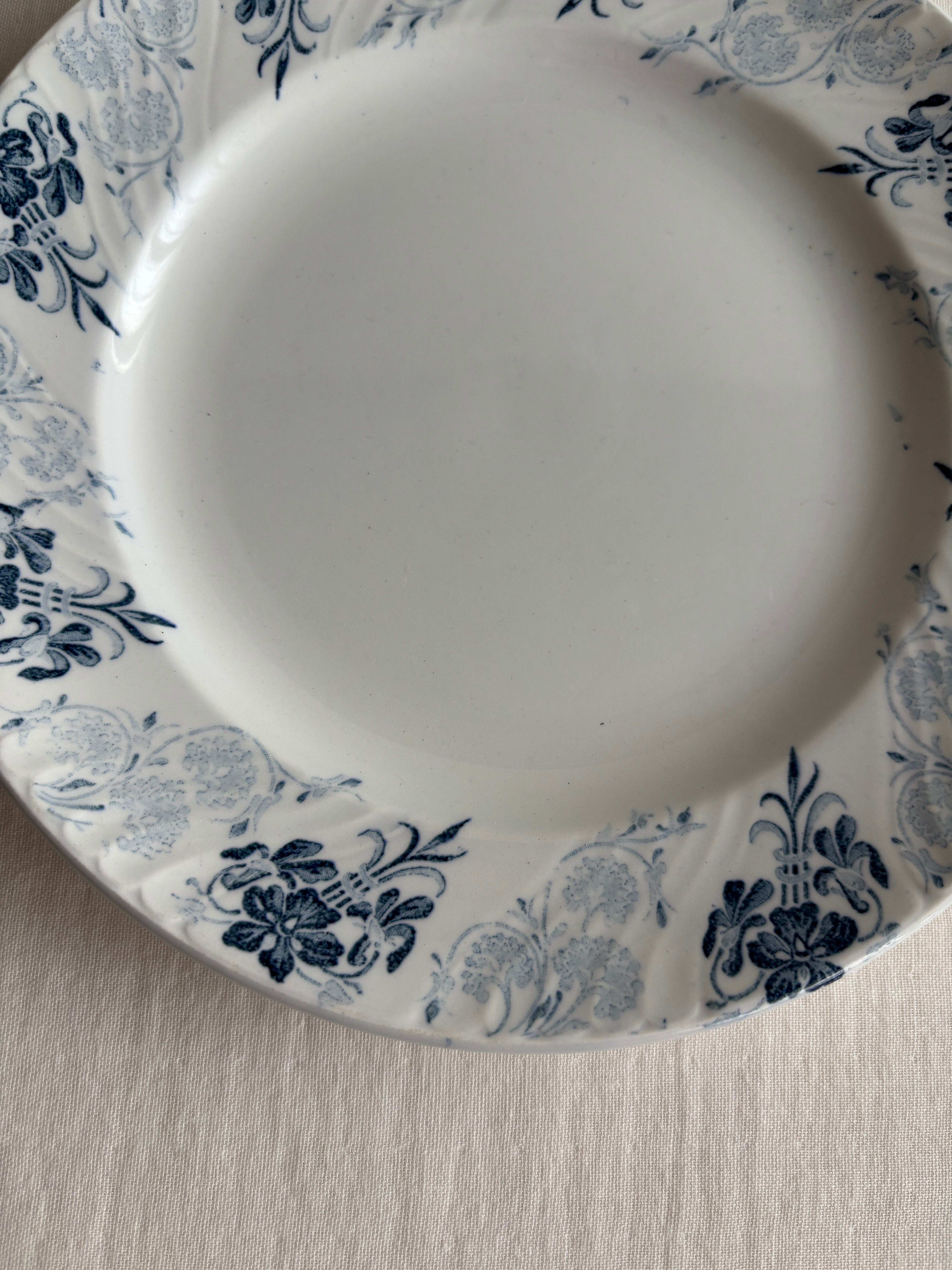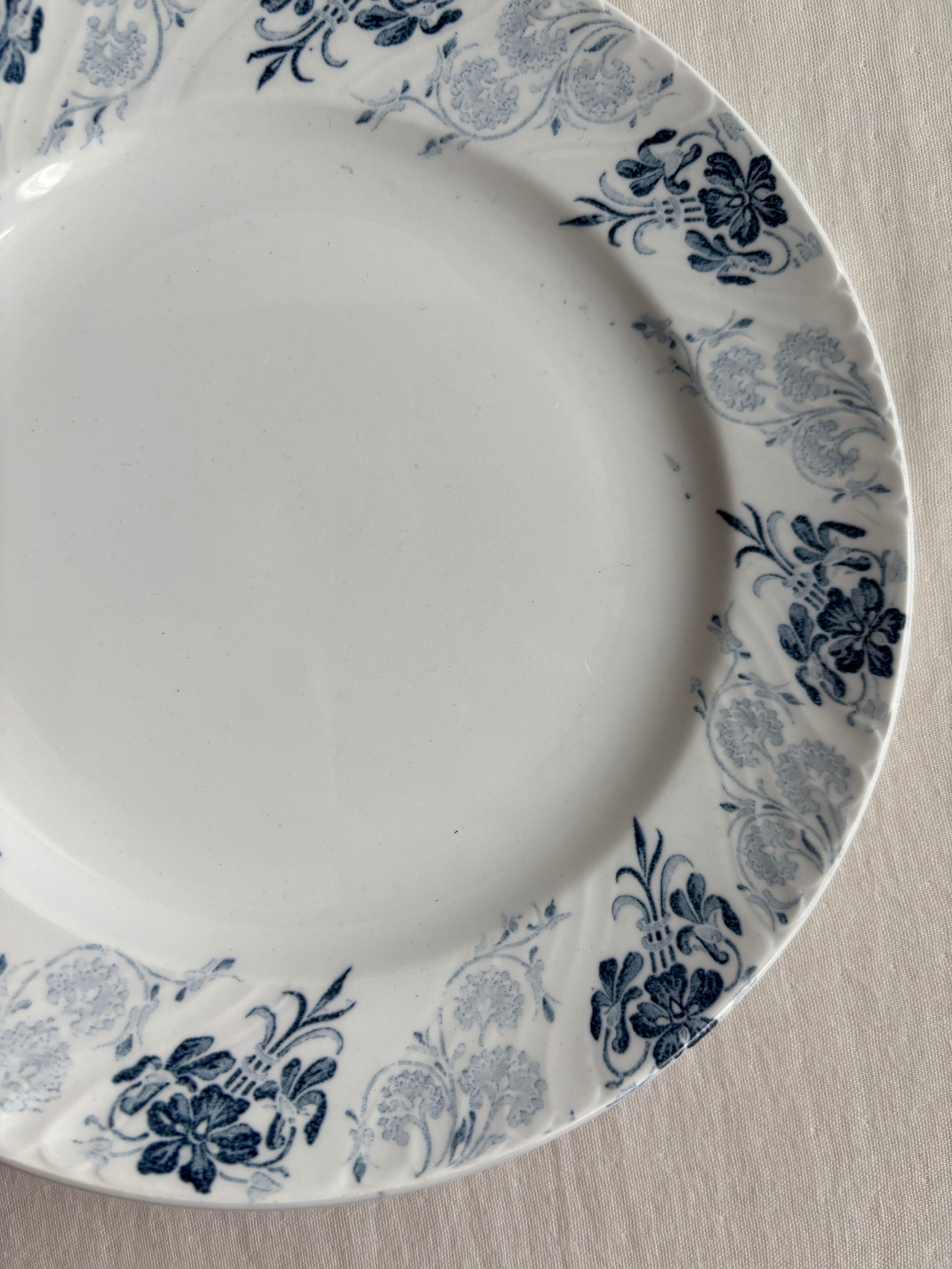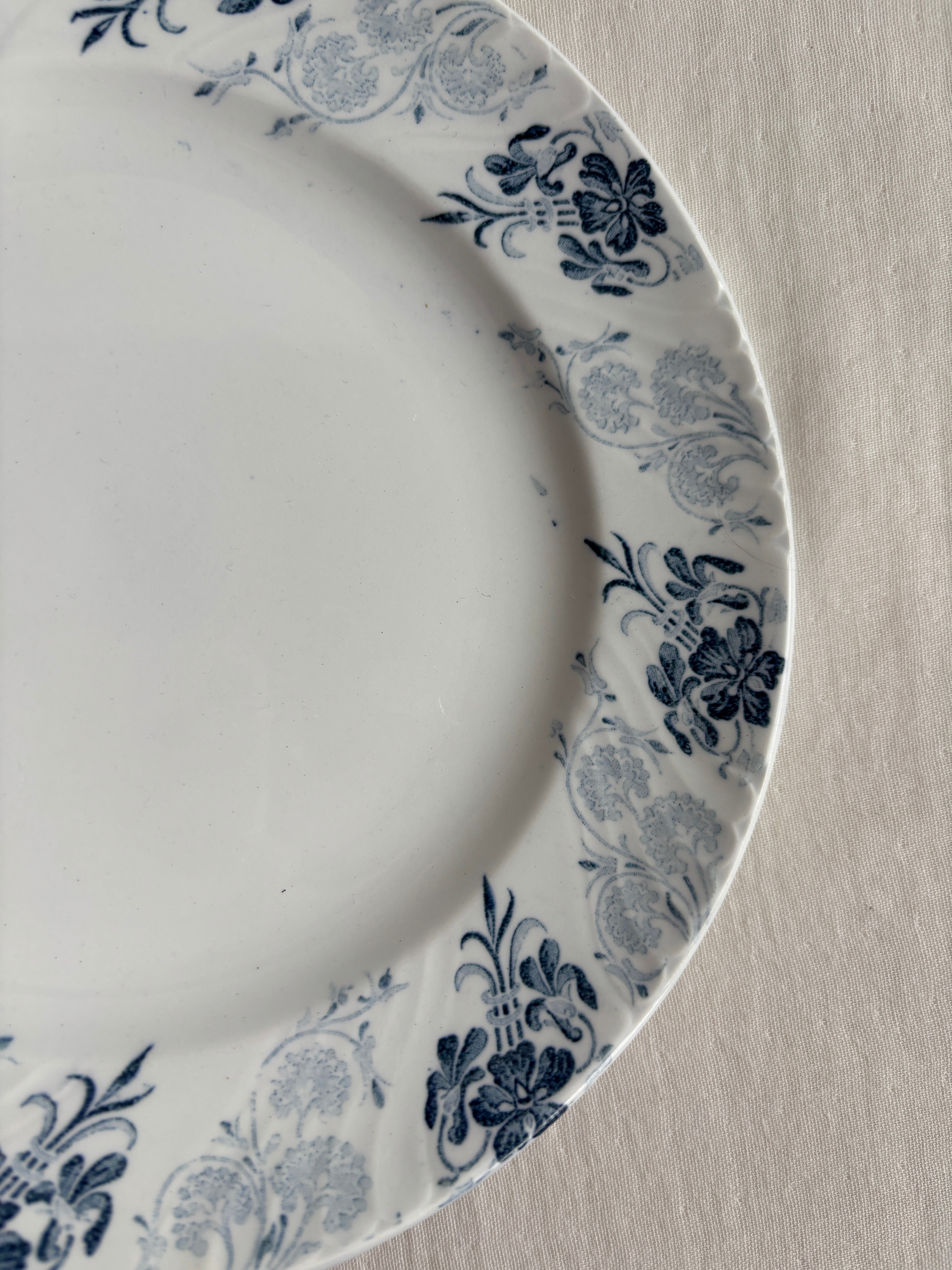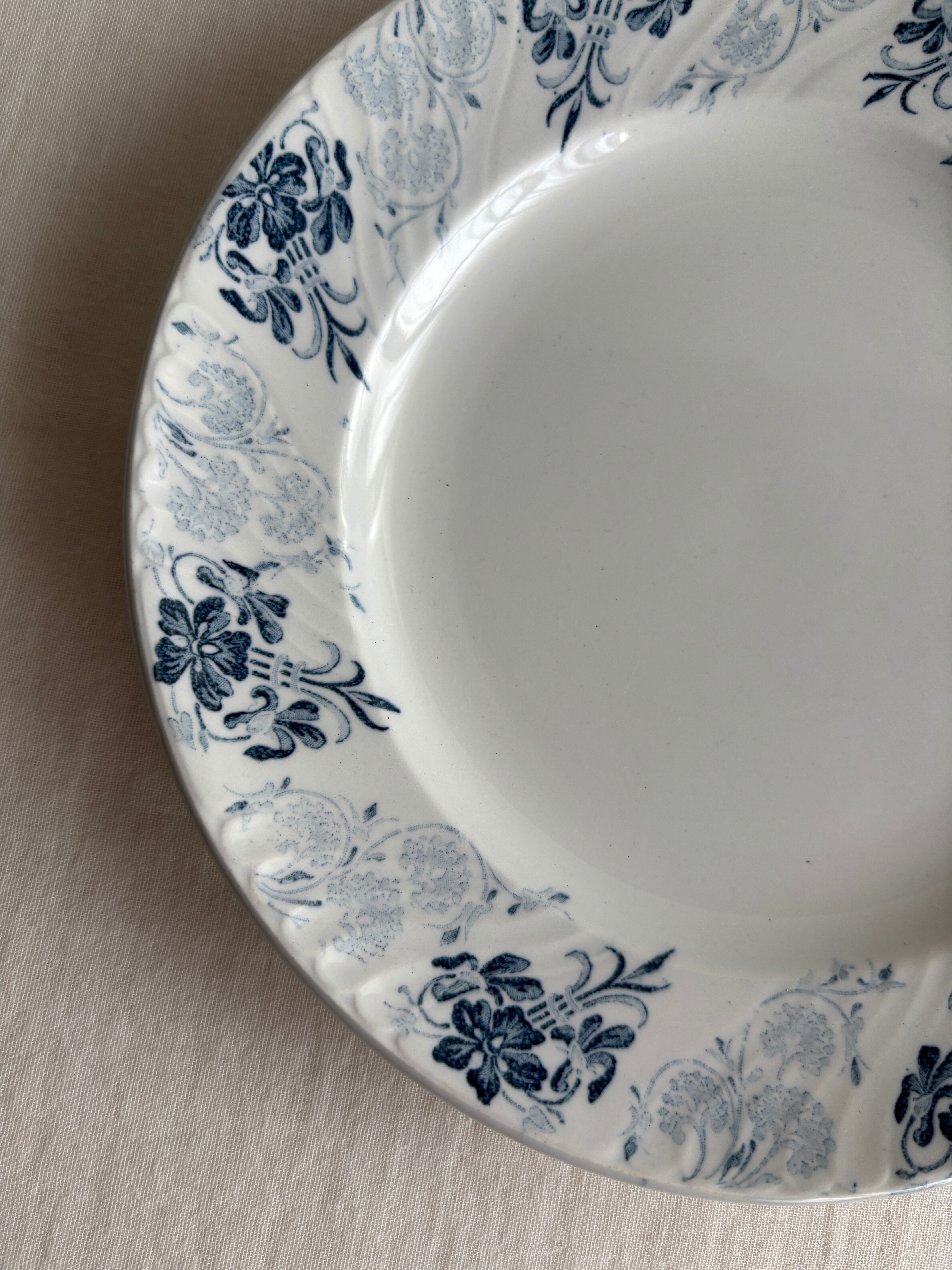 白地に深いブルーと淡いブルーで描かれた花々が美しい、上品で落ち着いた雰囲気のデザートプレート。