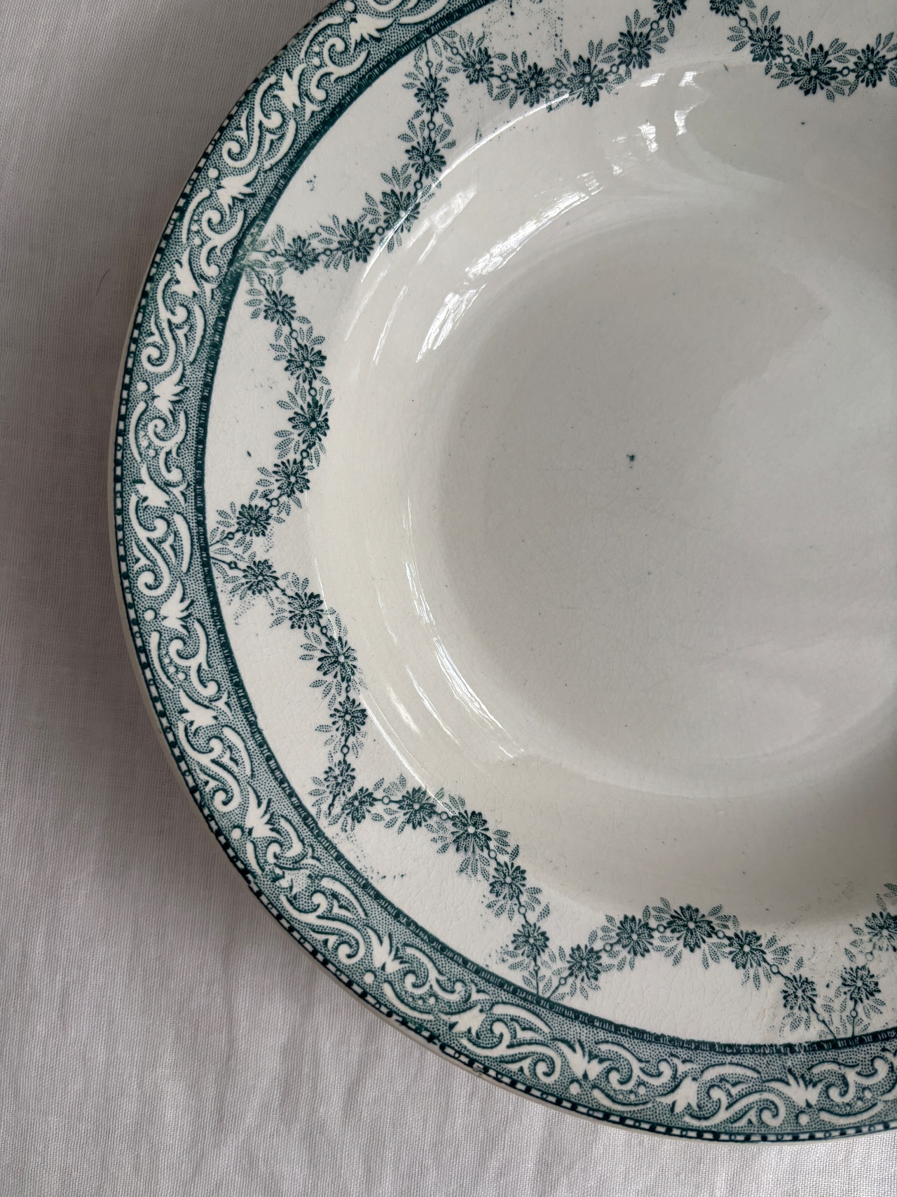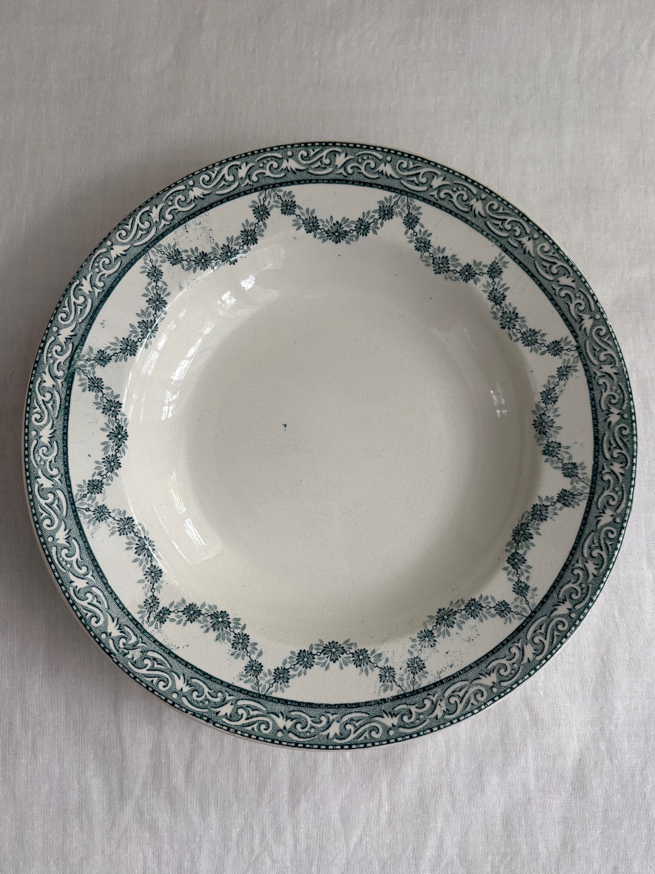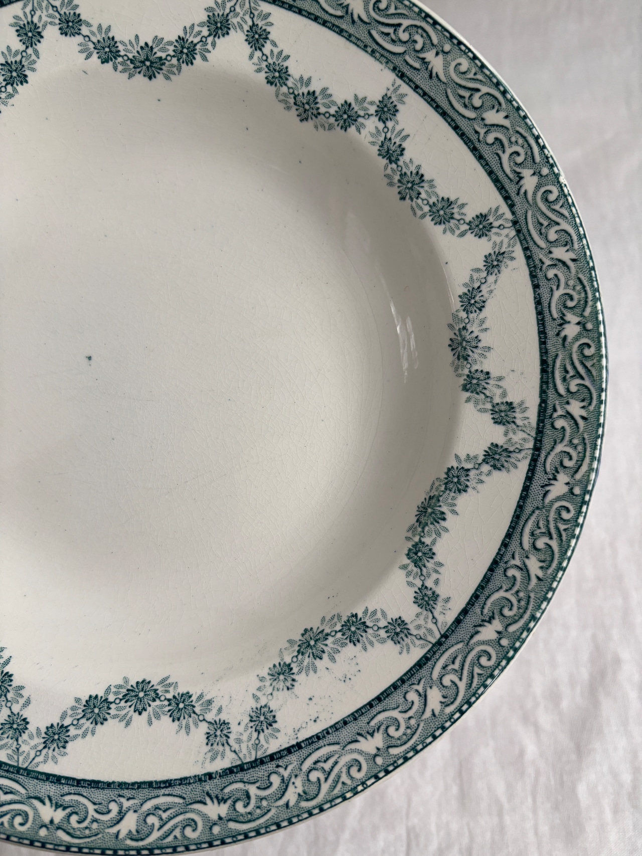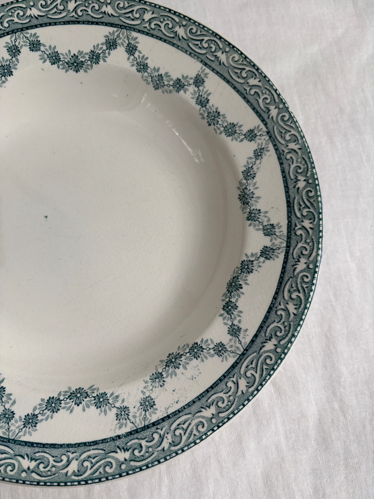 グリーンのガーランド模様が素敵な深皿プレート。