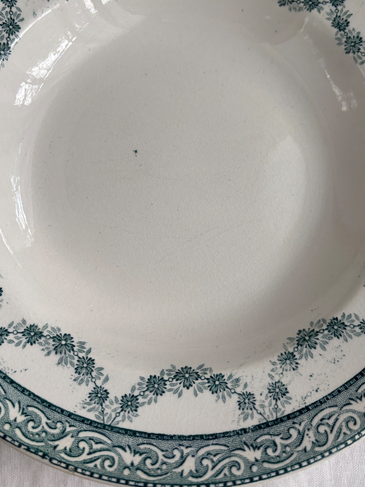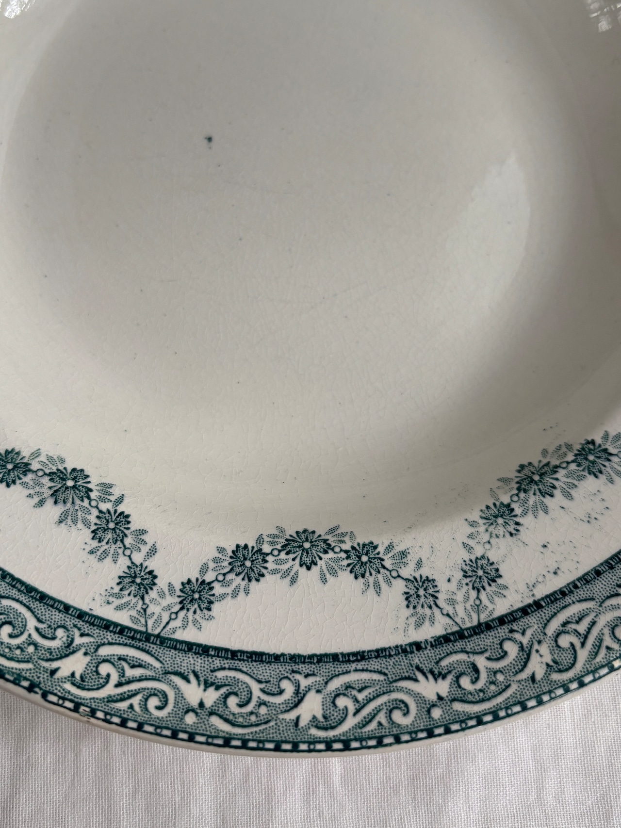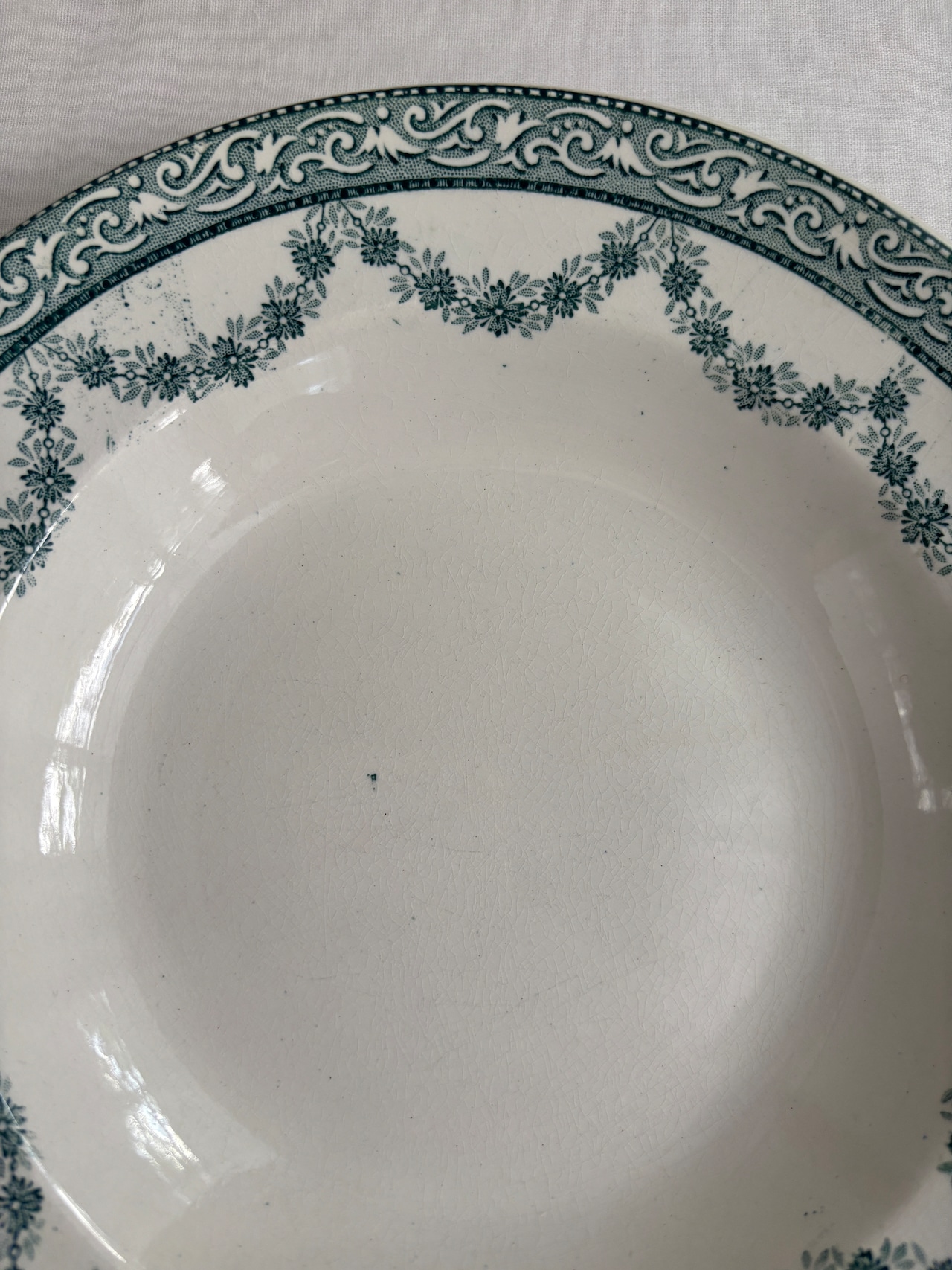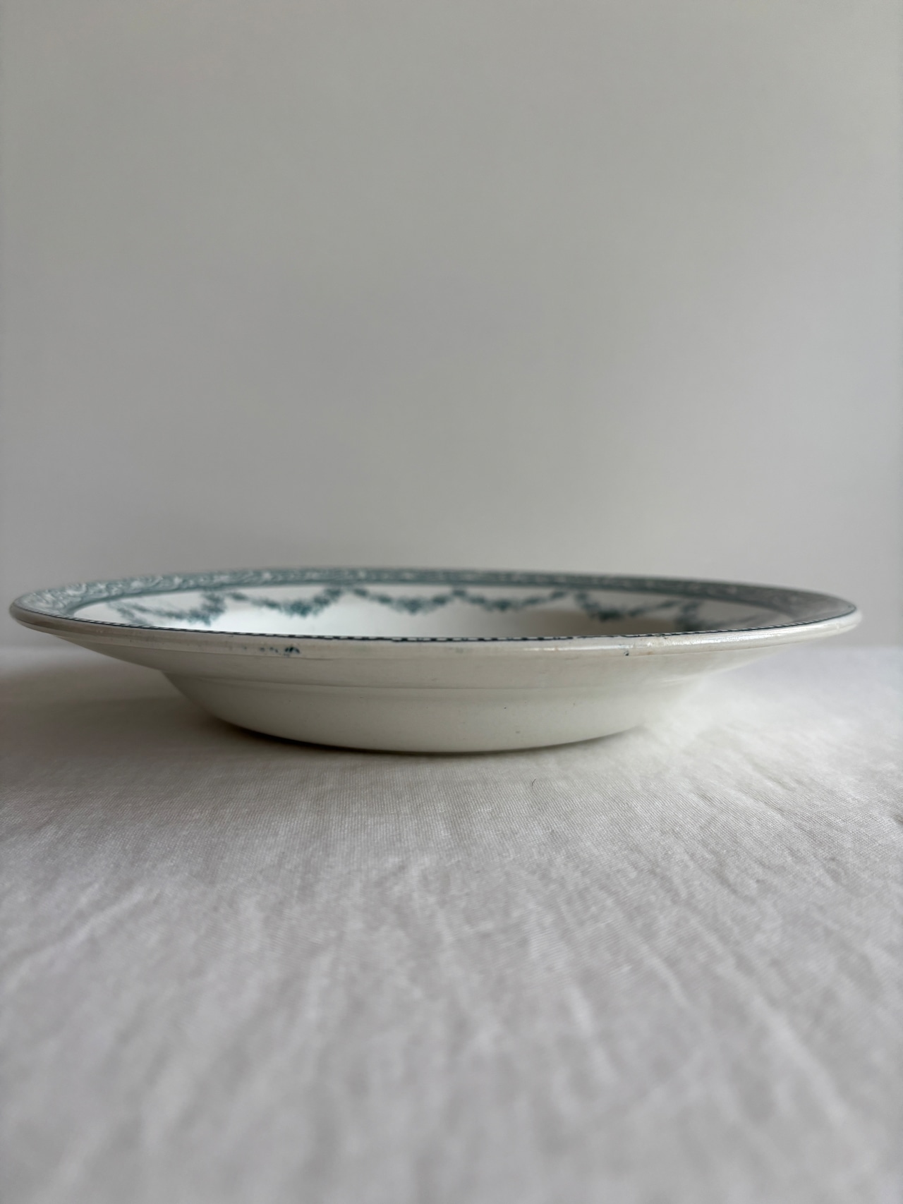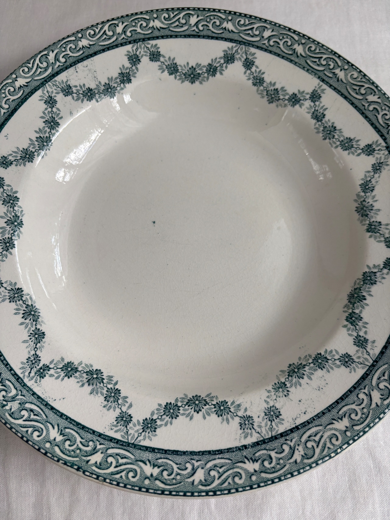 グリーンのガーランド模様が素敵な深皿プレート。
