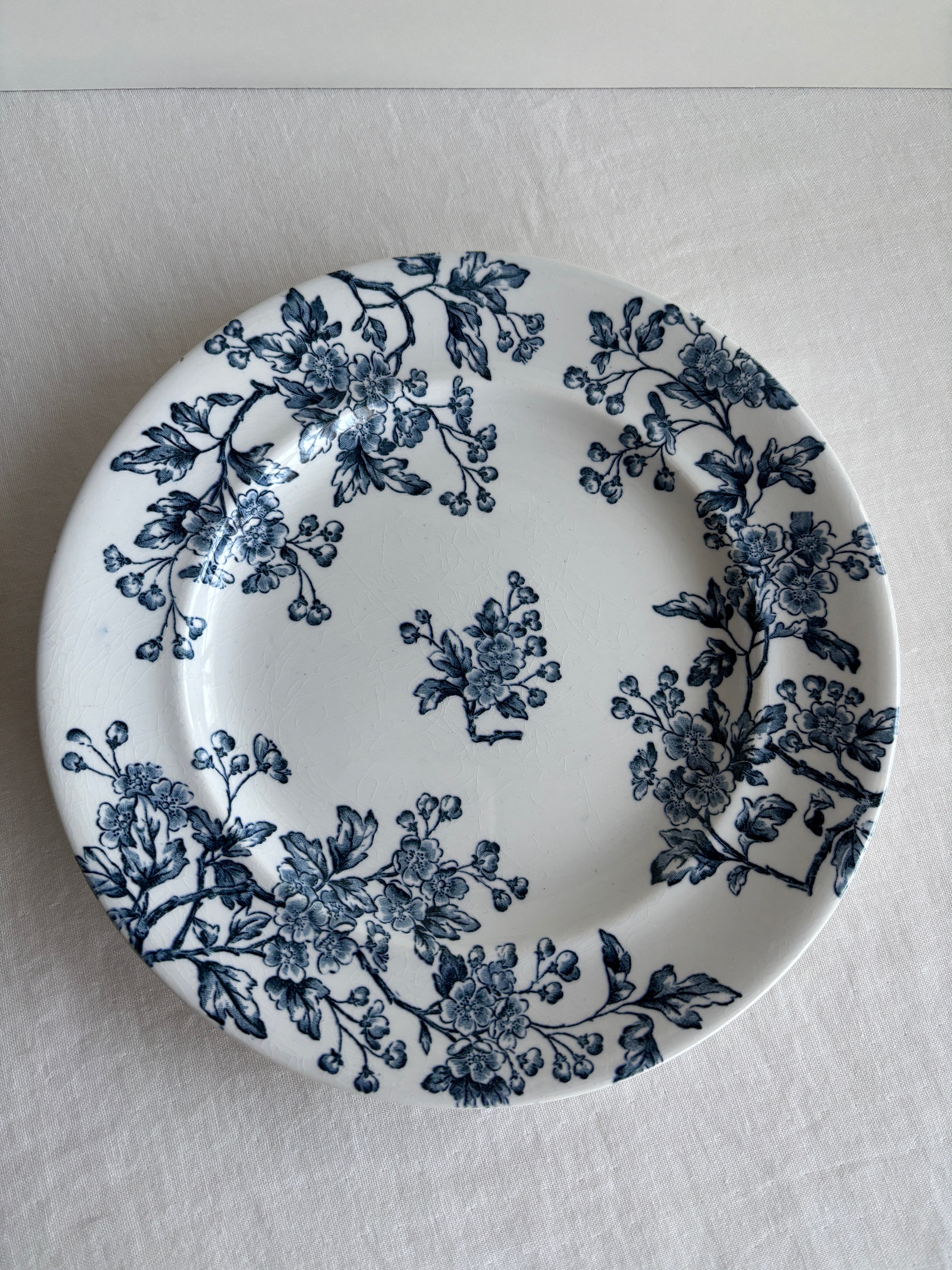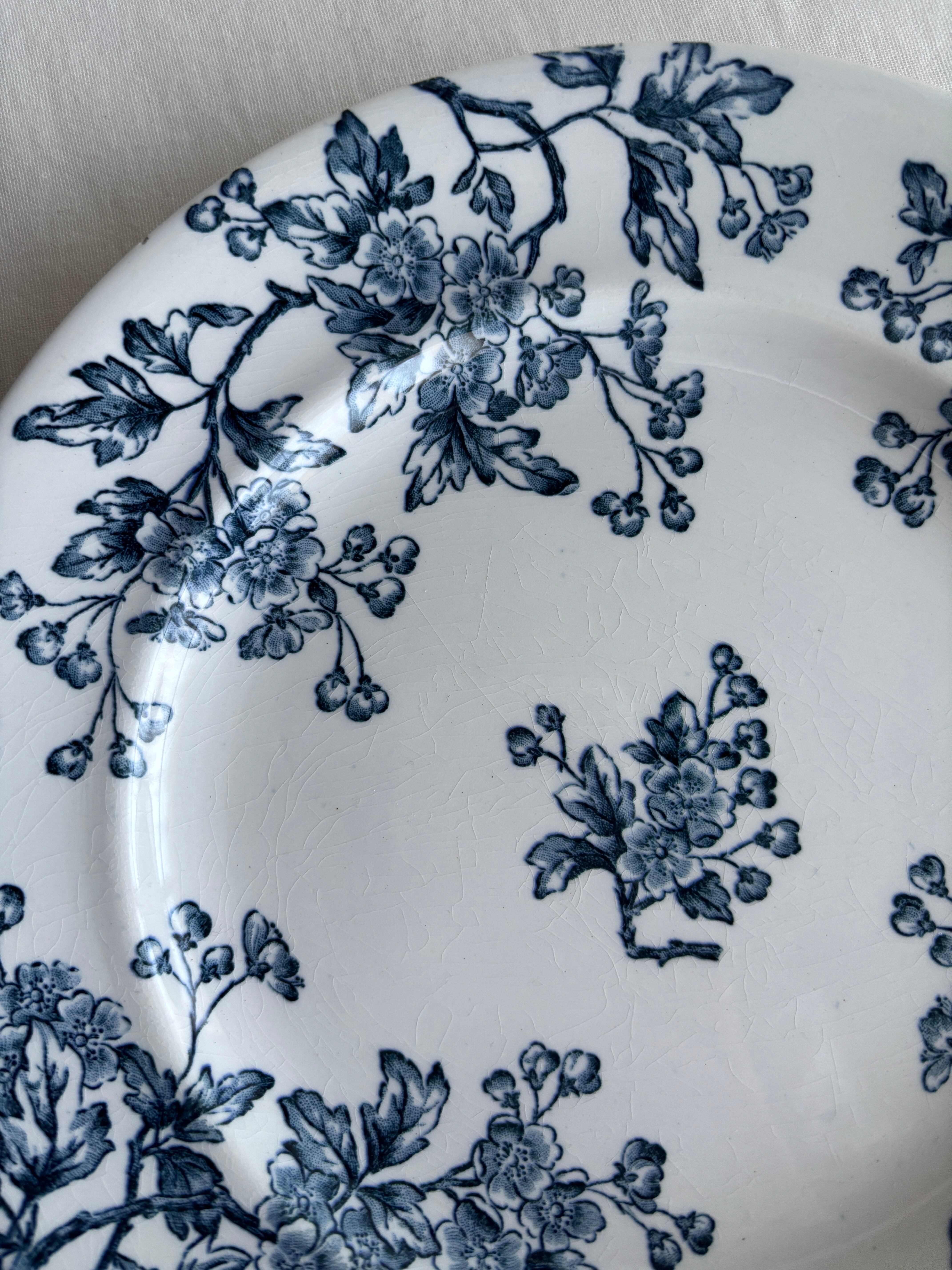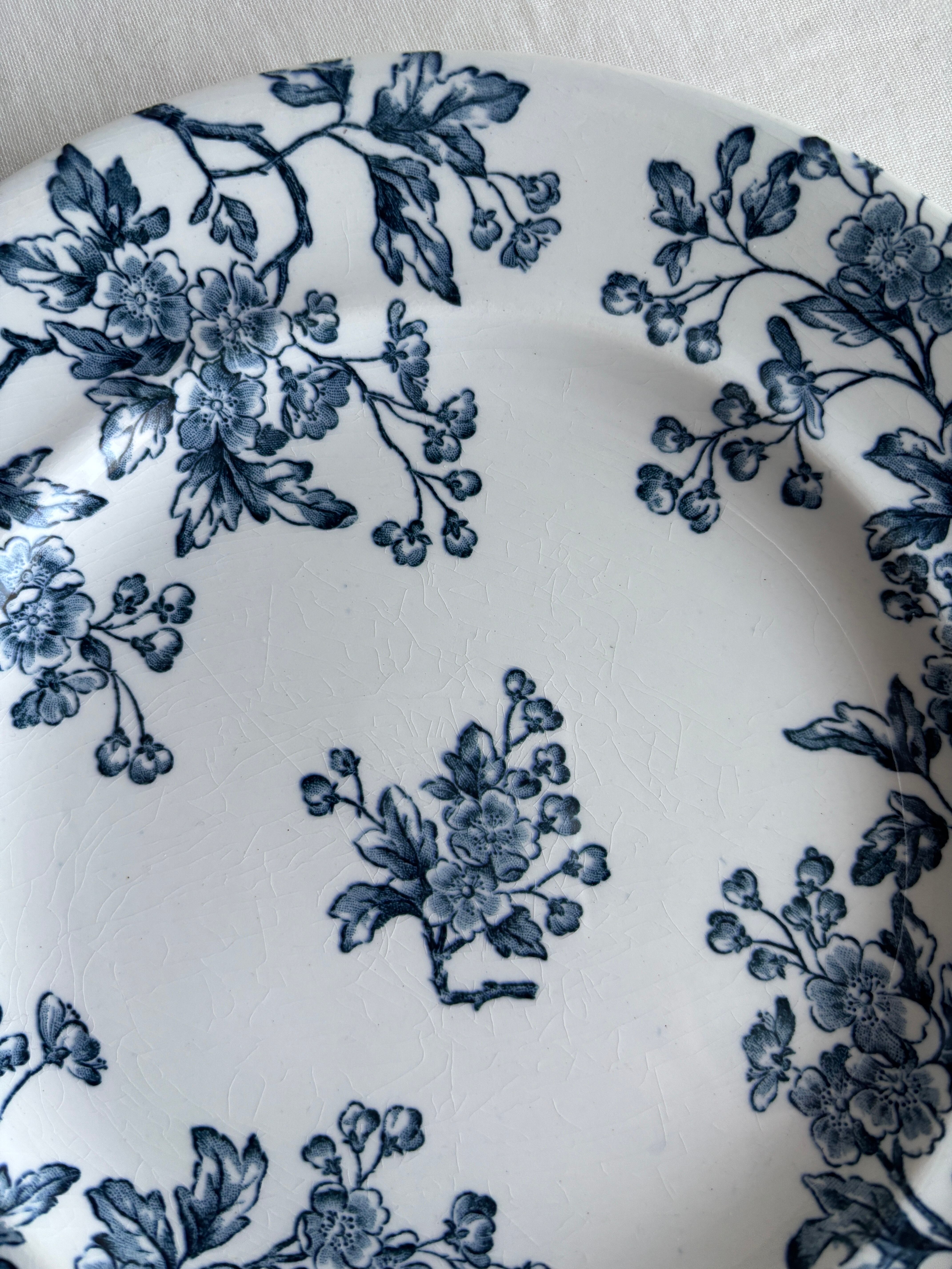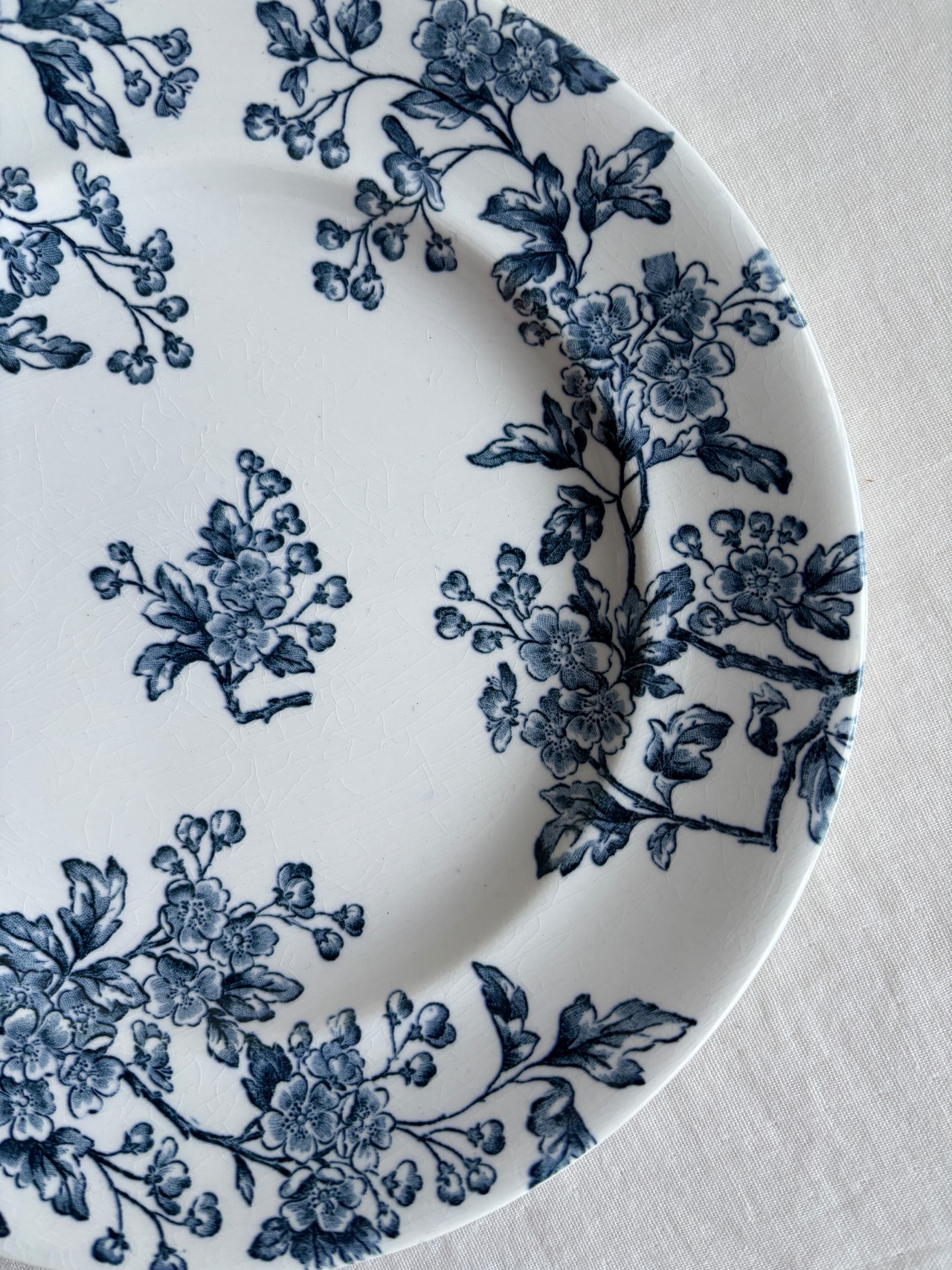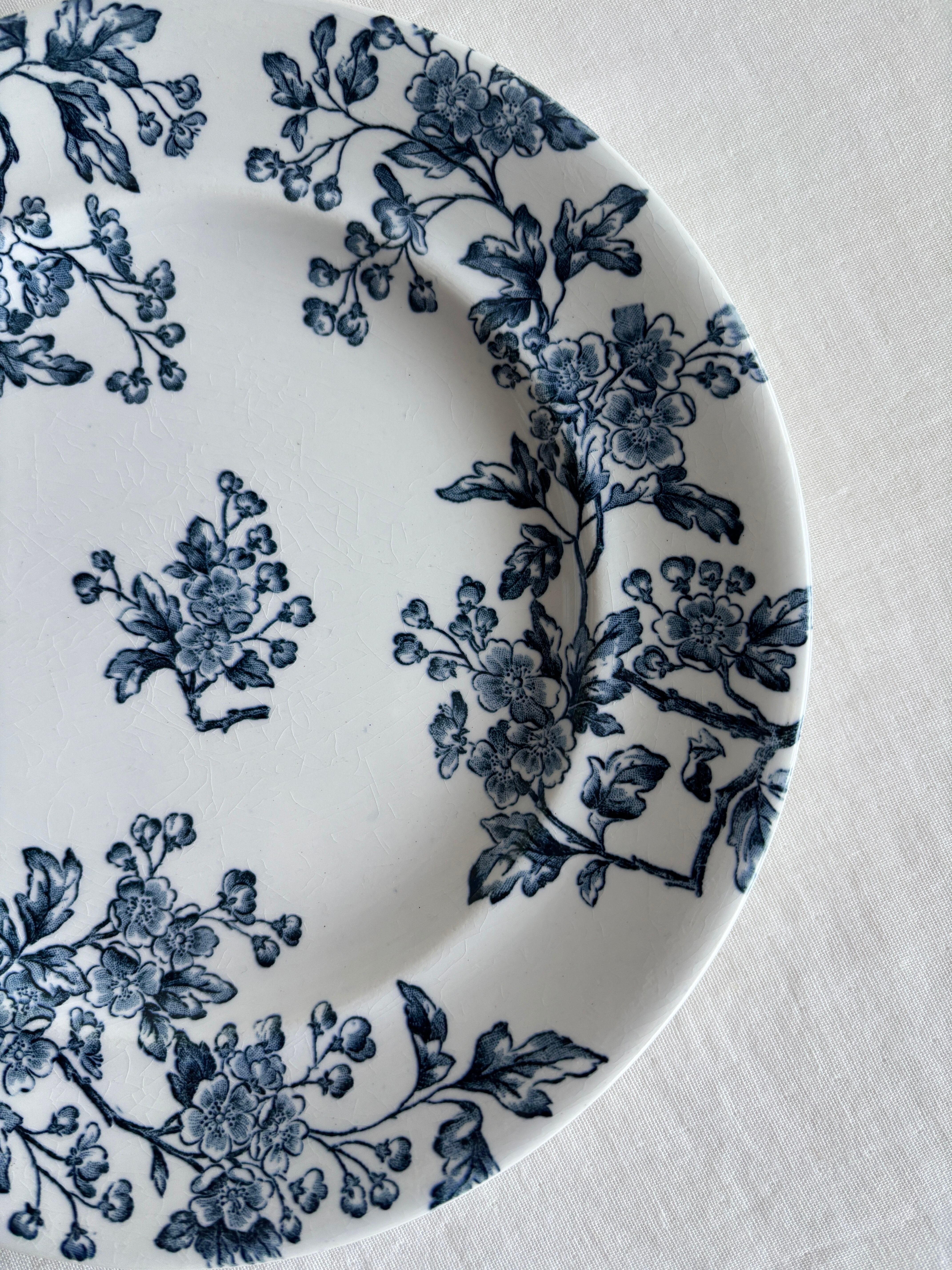 白地に深いブルーのサンザシのお花が素敵なプレート。
