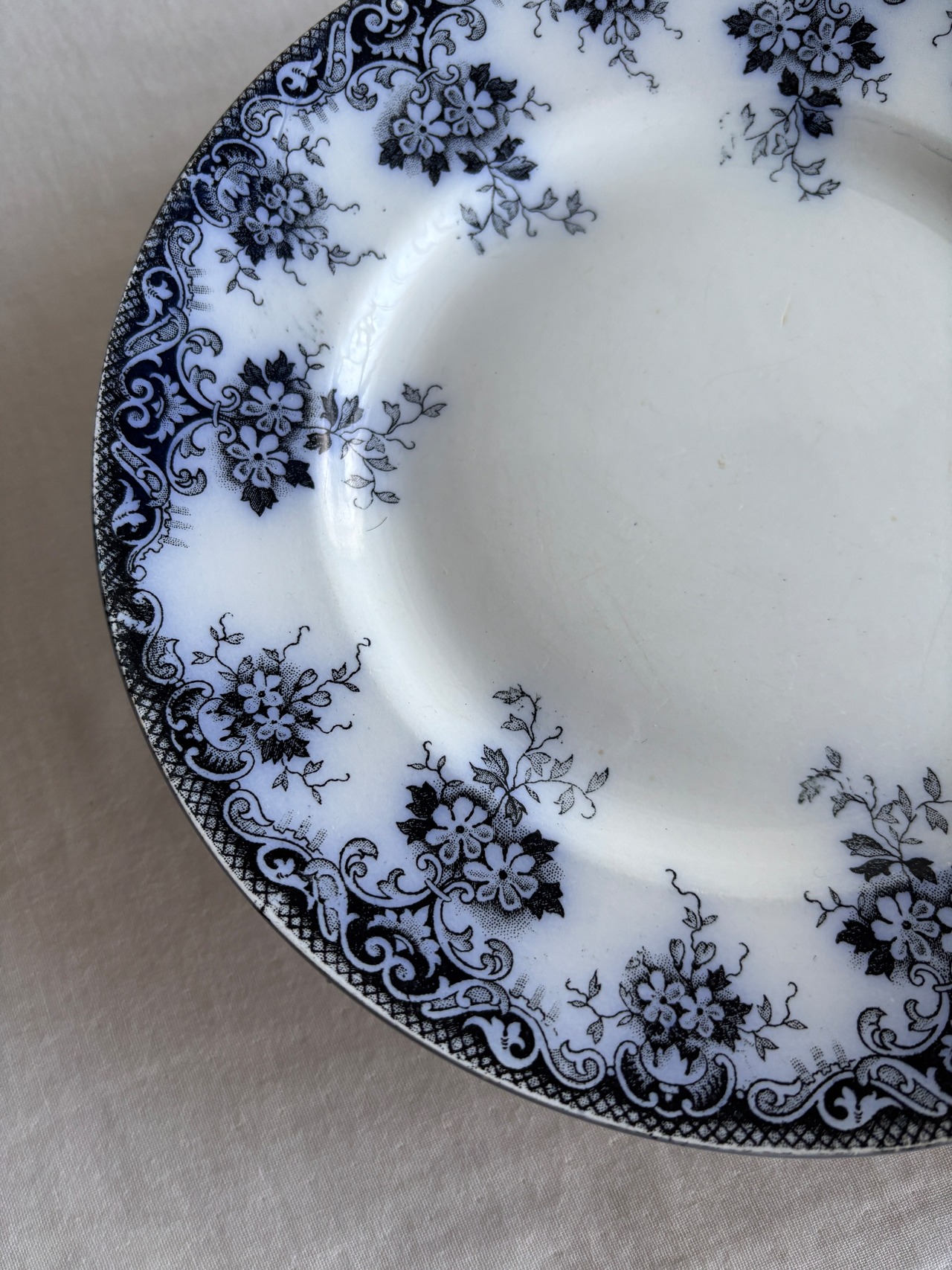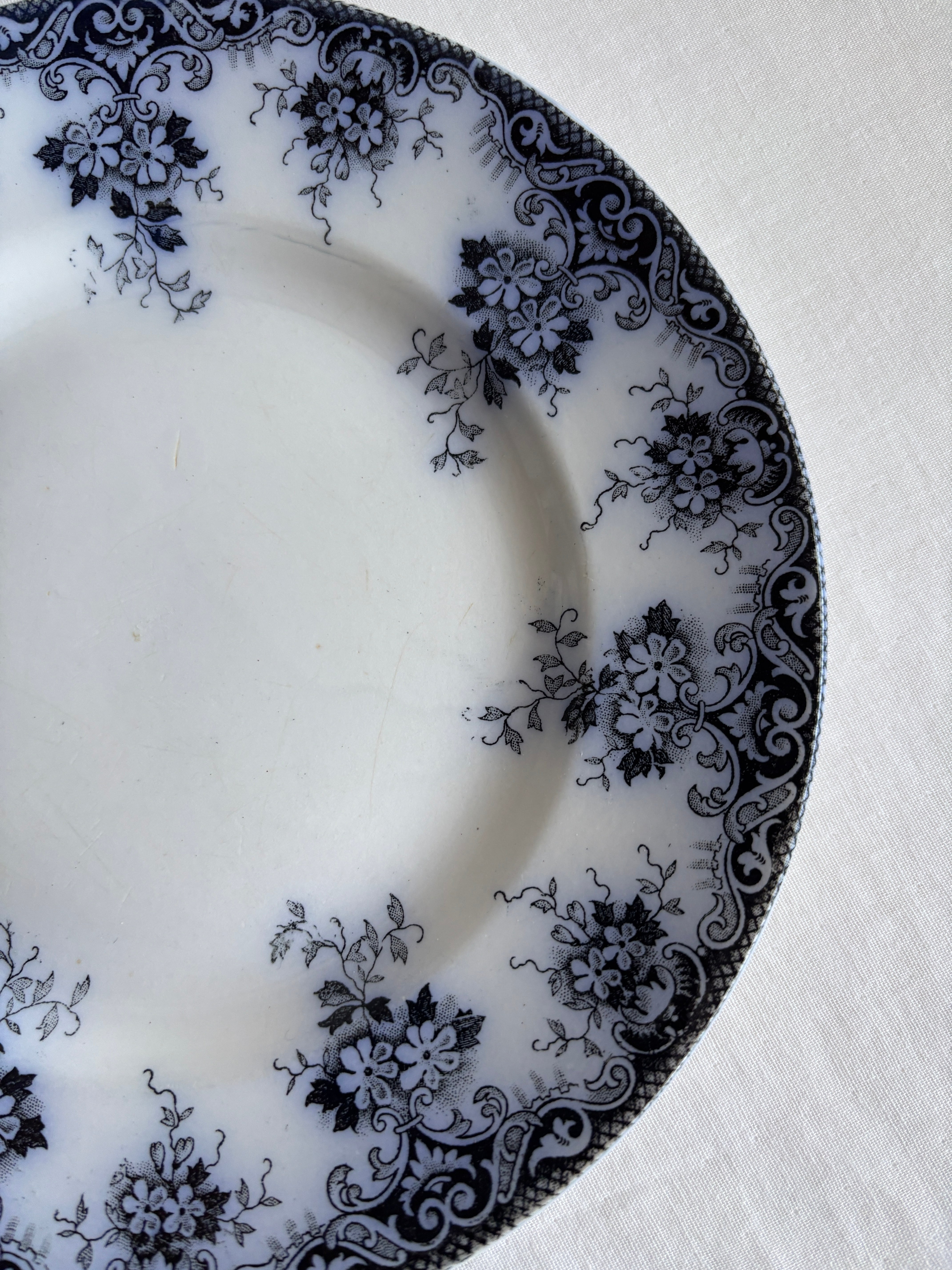 白地に深みのあるブラックカラーのコントラスト、描かれているお花がとても美しいプレート。