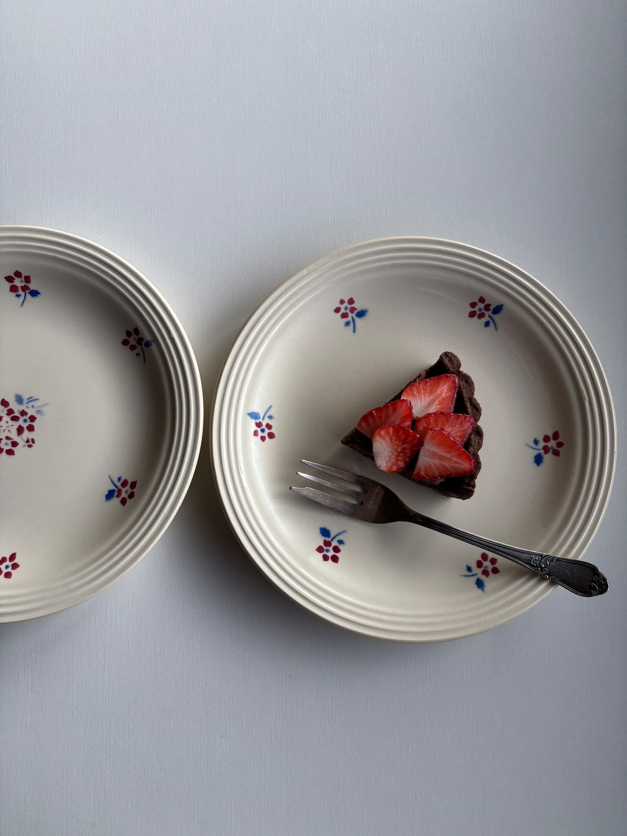 クリーム色に赤い小花ががとっても可愛いデザートプレートです…。