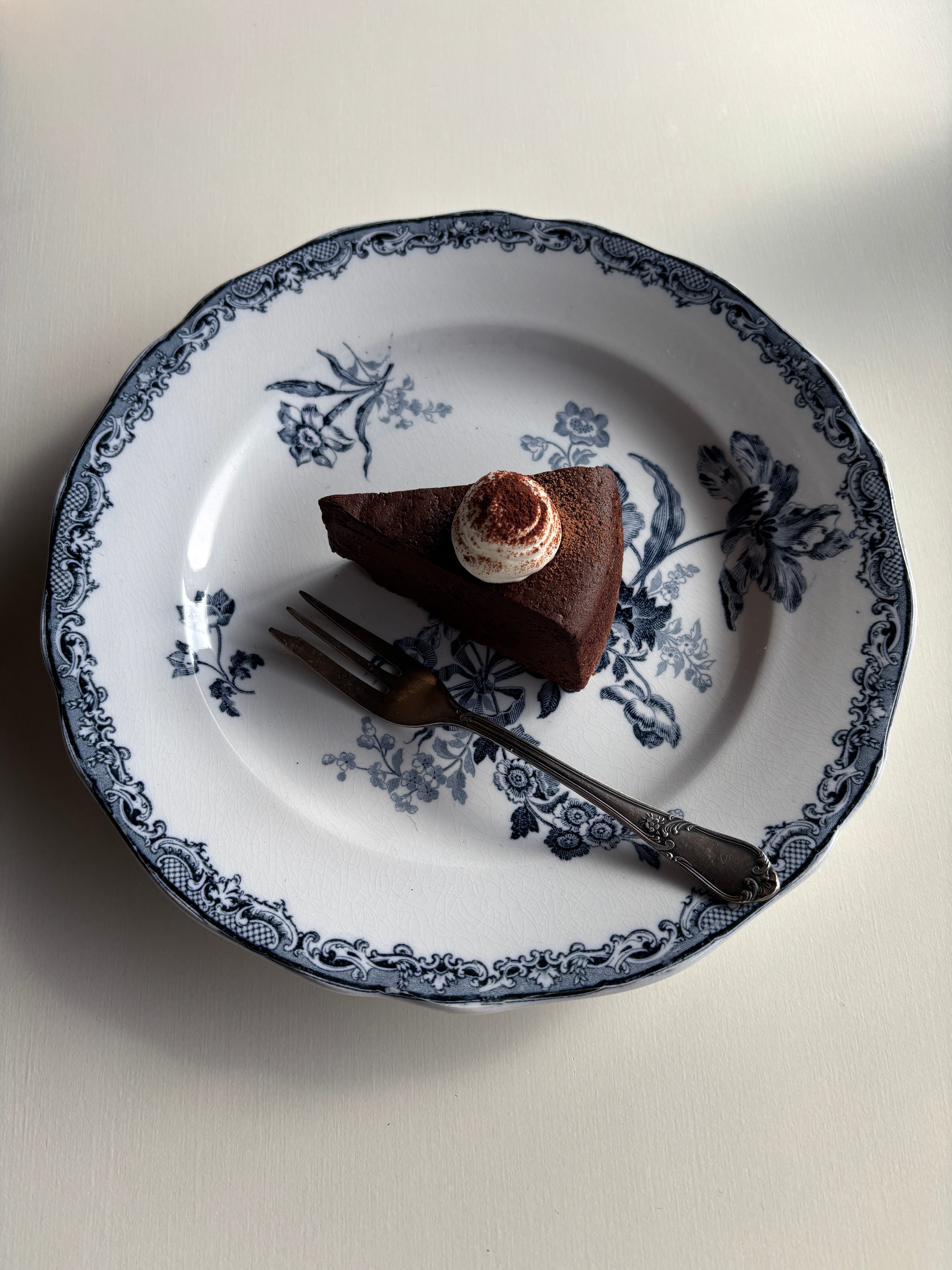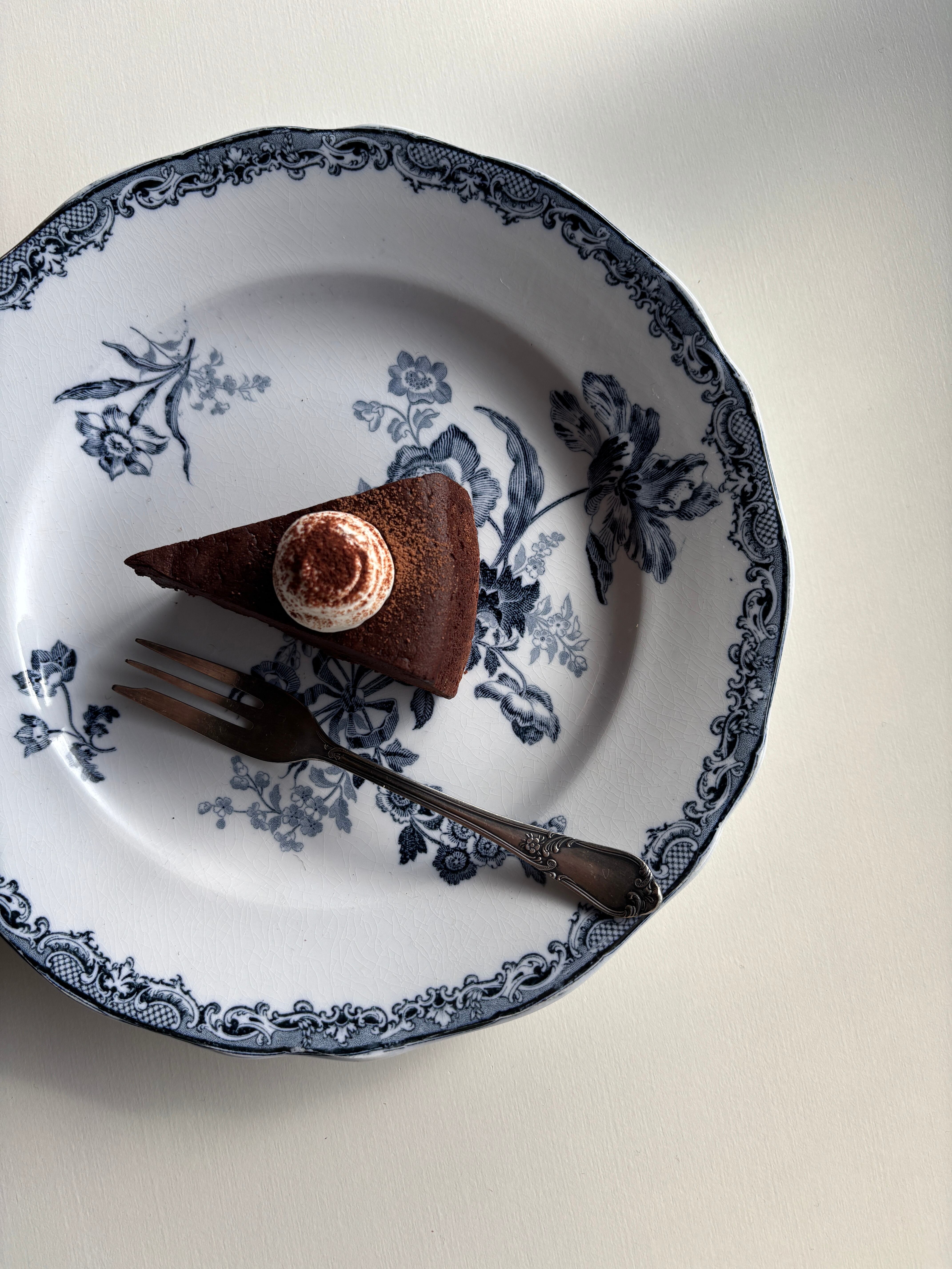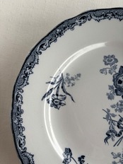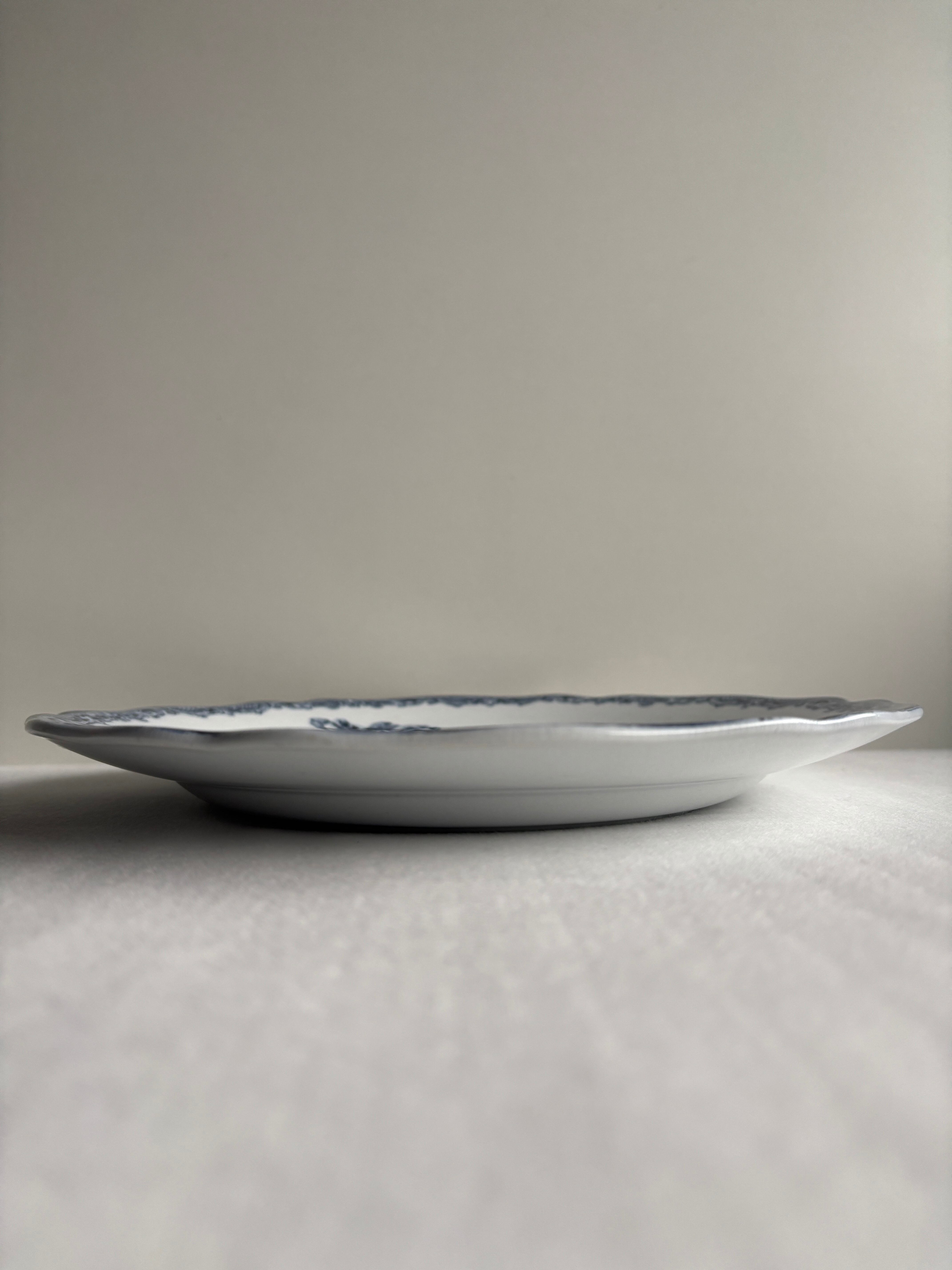 深いブルーのお花が繊細で美しいディナープレートです。縁が花リムなのも素敵です…。