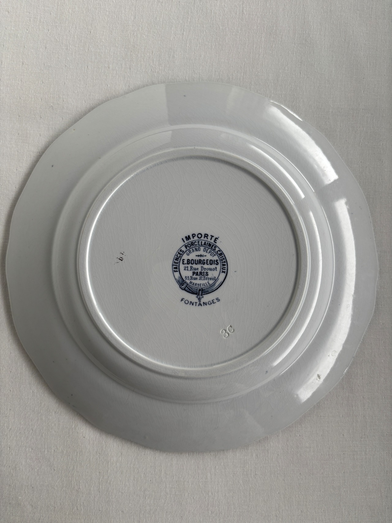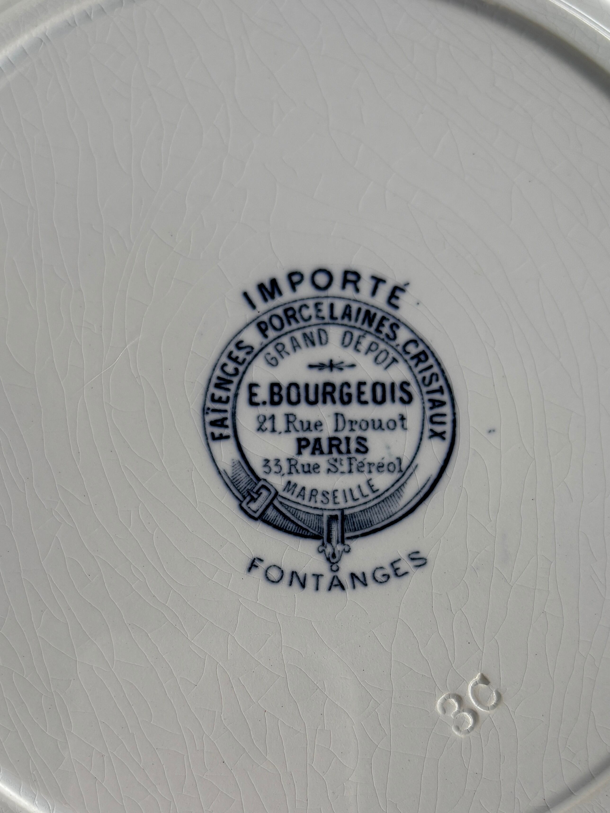 窯元Sarreguemines、販売元がE.Bourgeois(エミールブルジョワ)で、バックスタンプはE.Bourgeです!