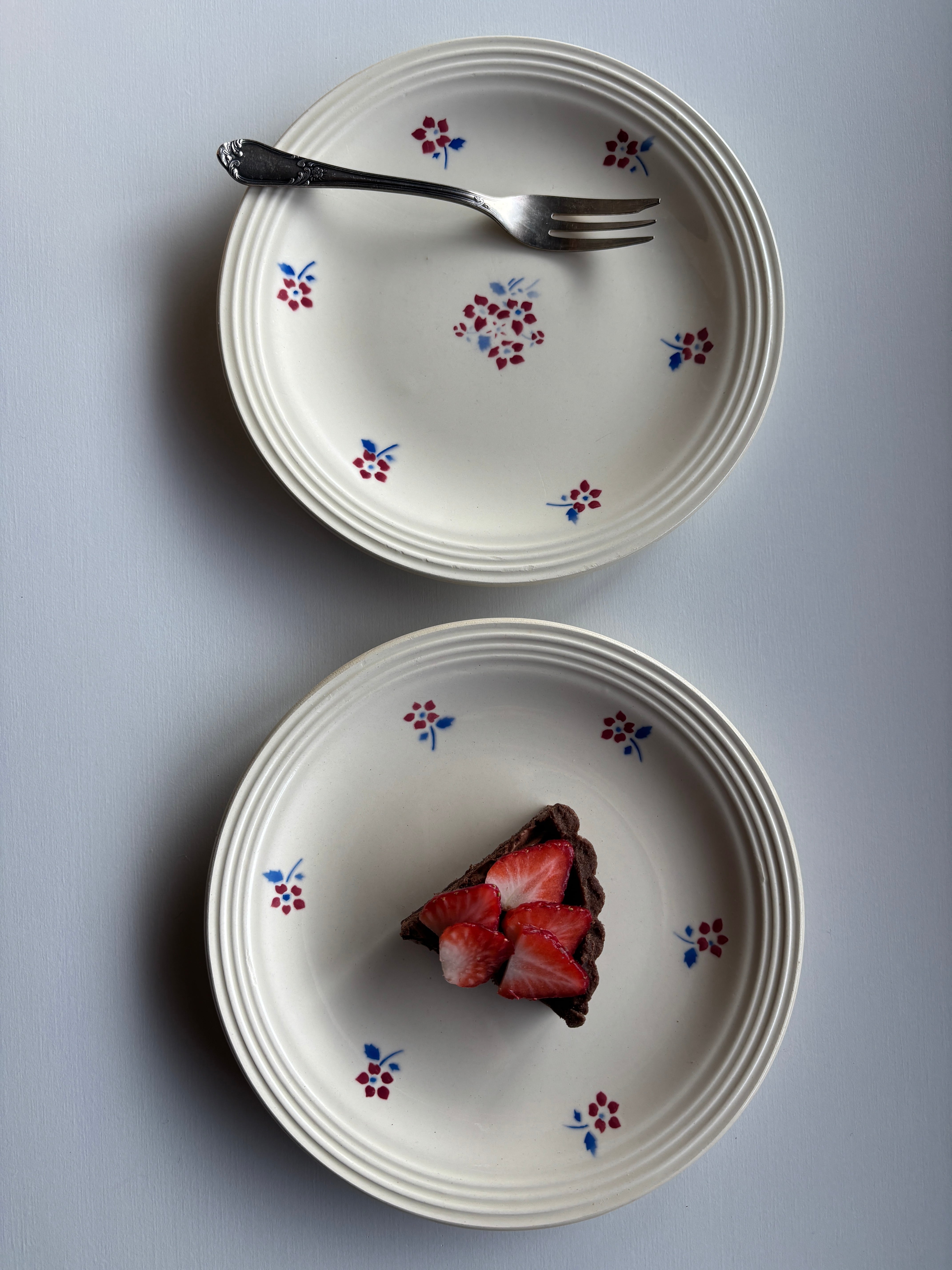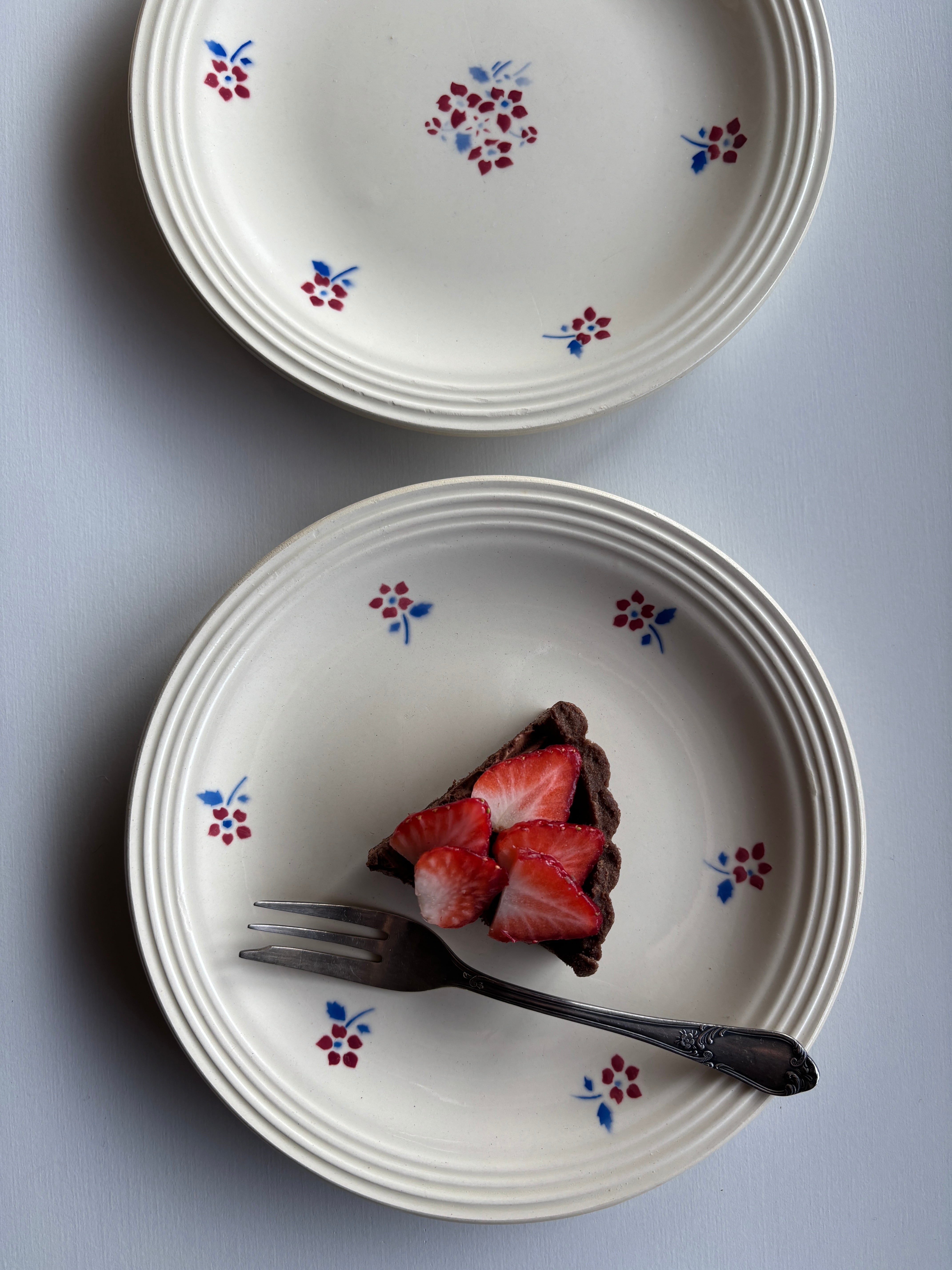 クリーム色に赤い小花ががとっても可愛いデザートプレートです…。
