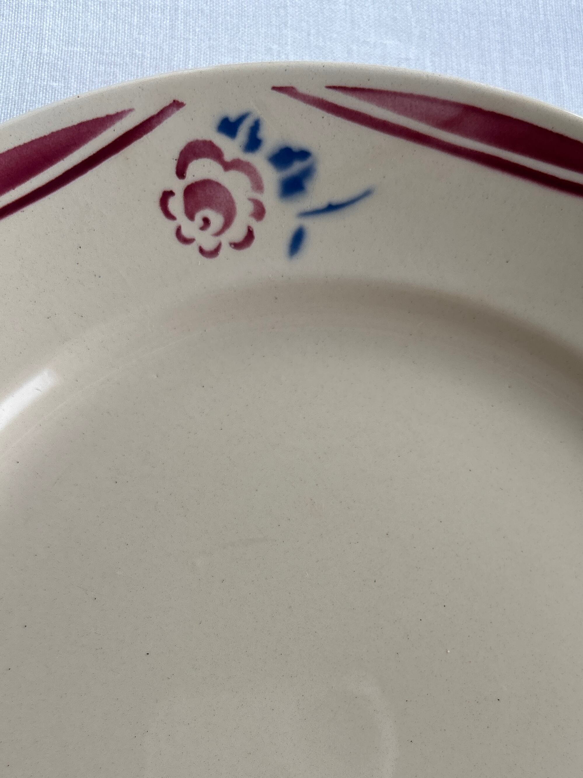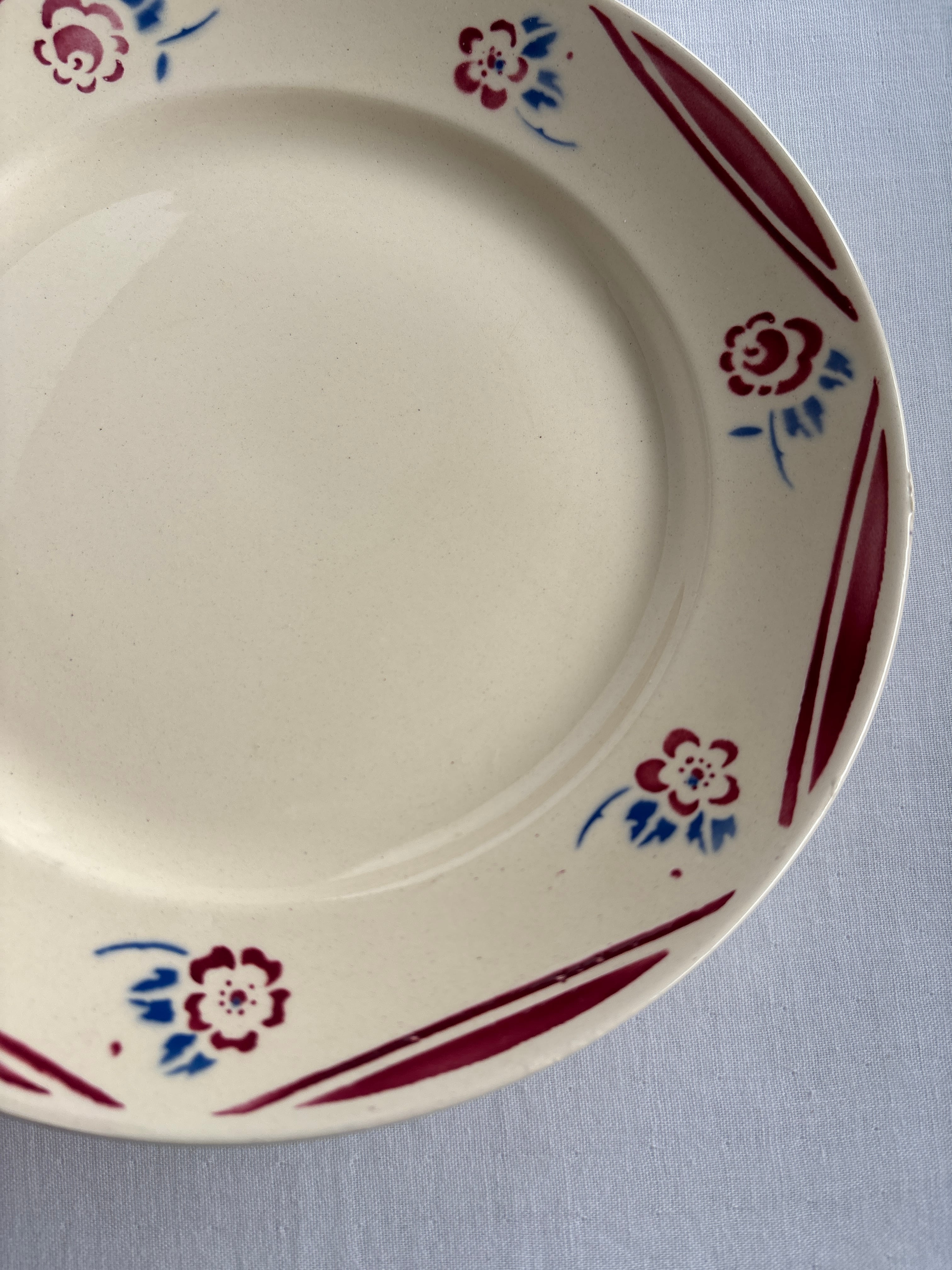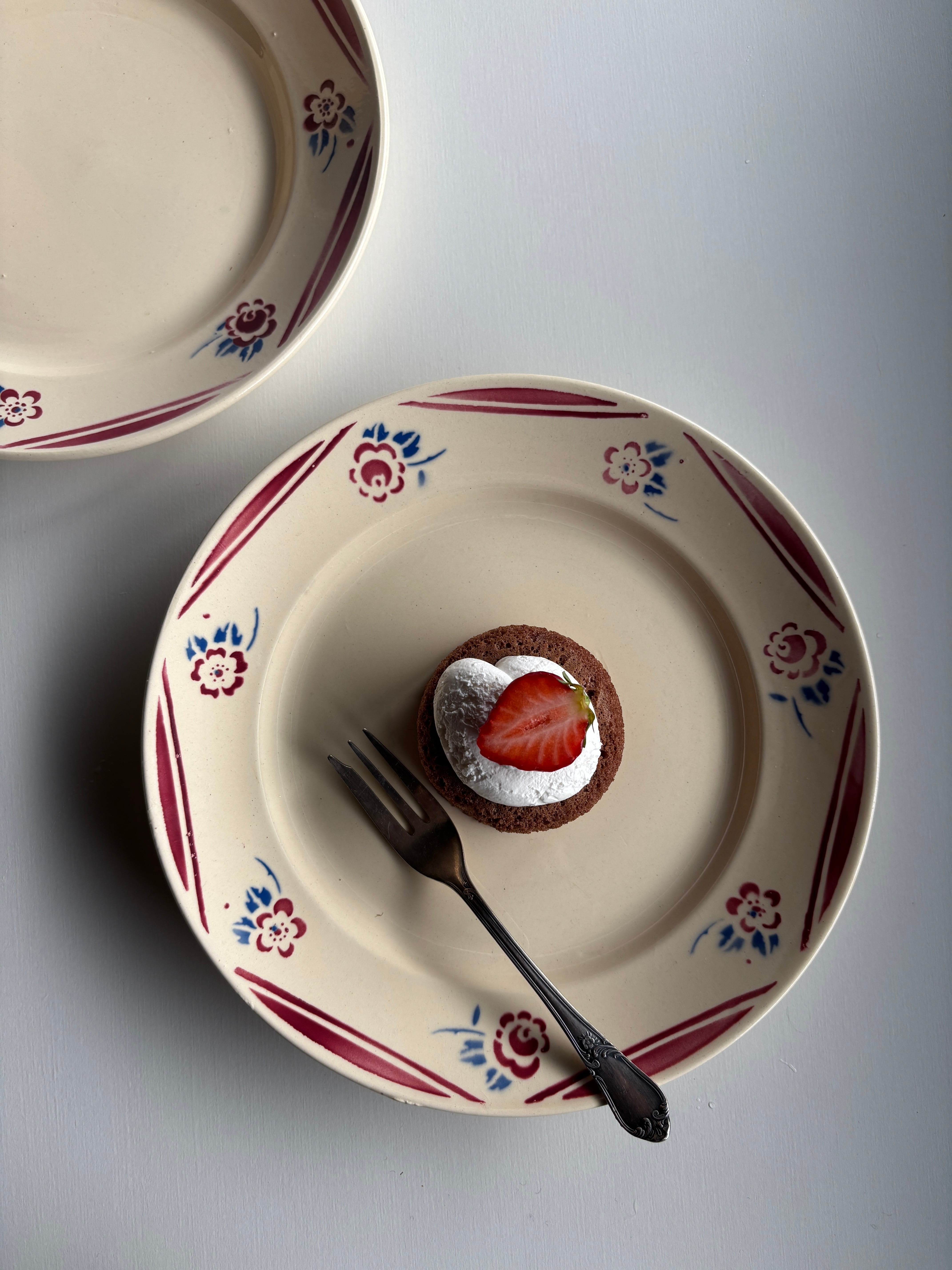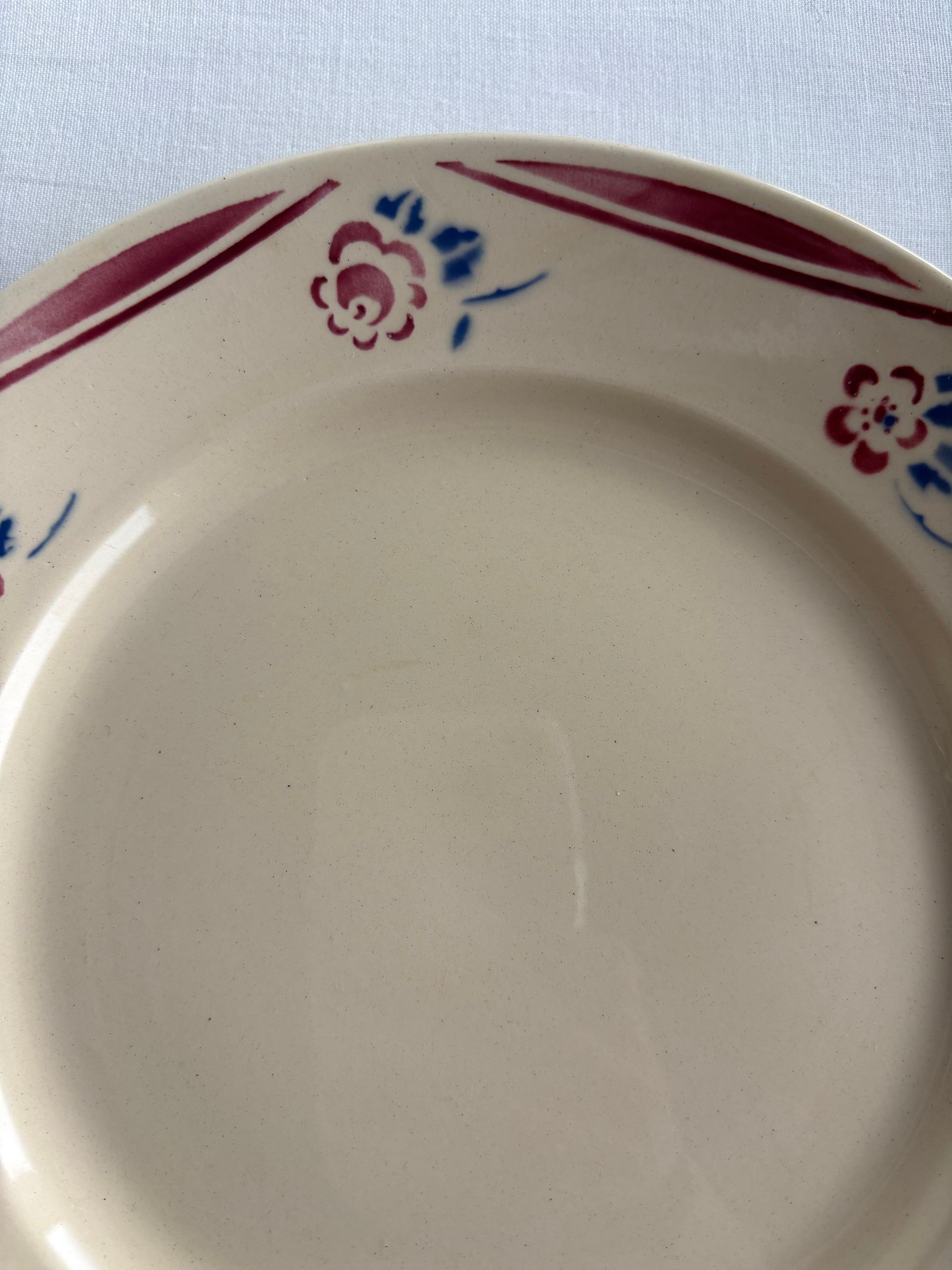濃いクリーム色にリムを彩る赤いラインとお花の模様がとっても可愛いディナープレート。