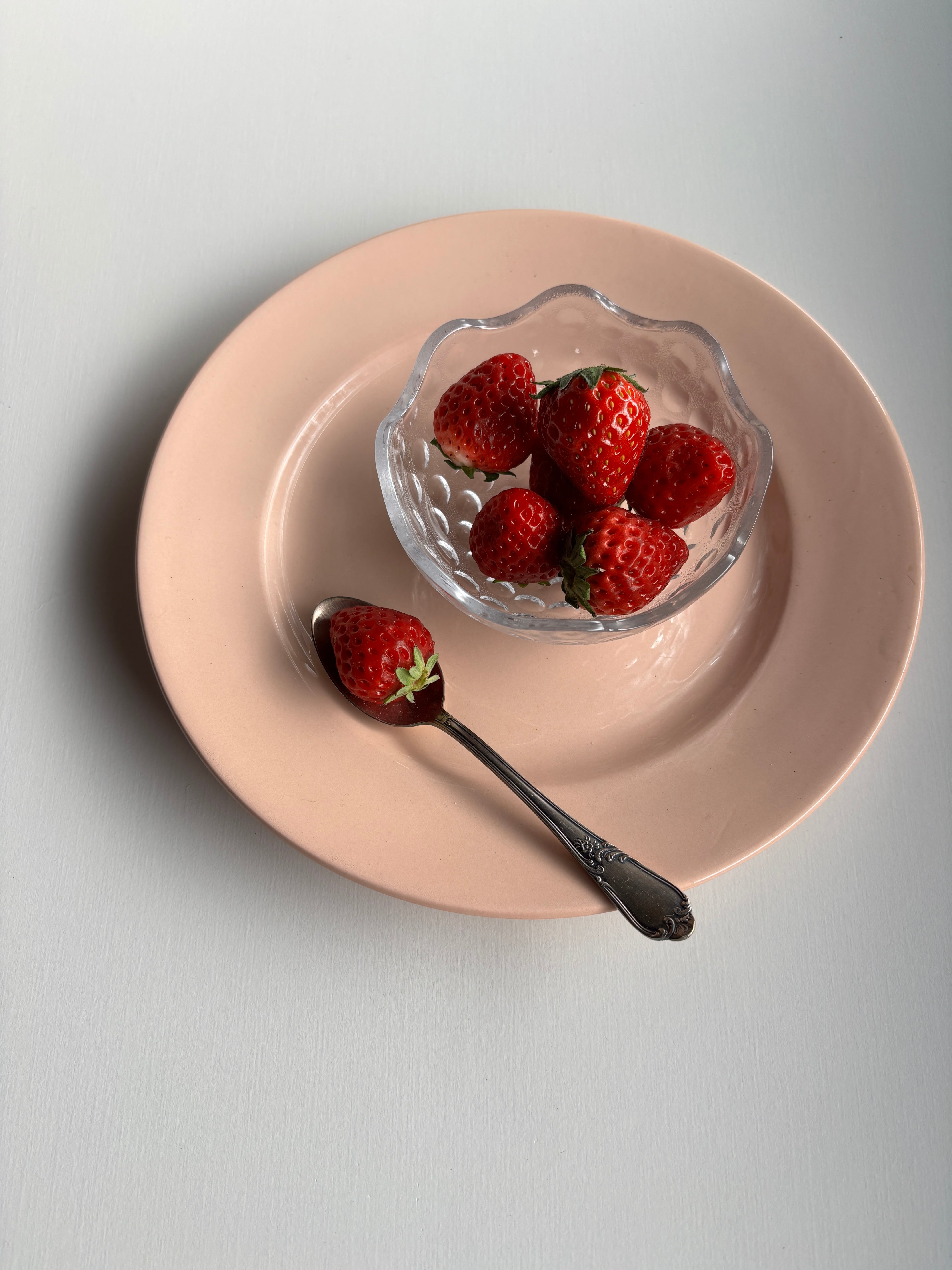 ケーキやフルーツはもちろん、パフェグラスを乗せたりガラスアイテムとも相性がいいお品です。
