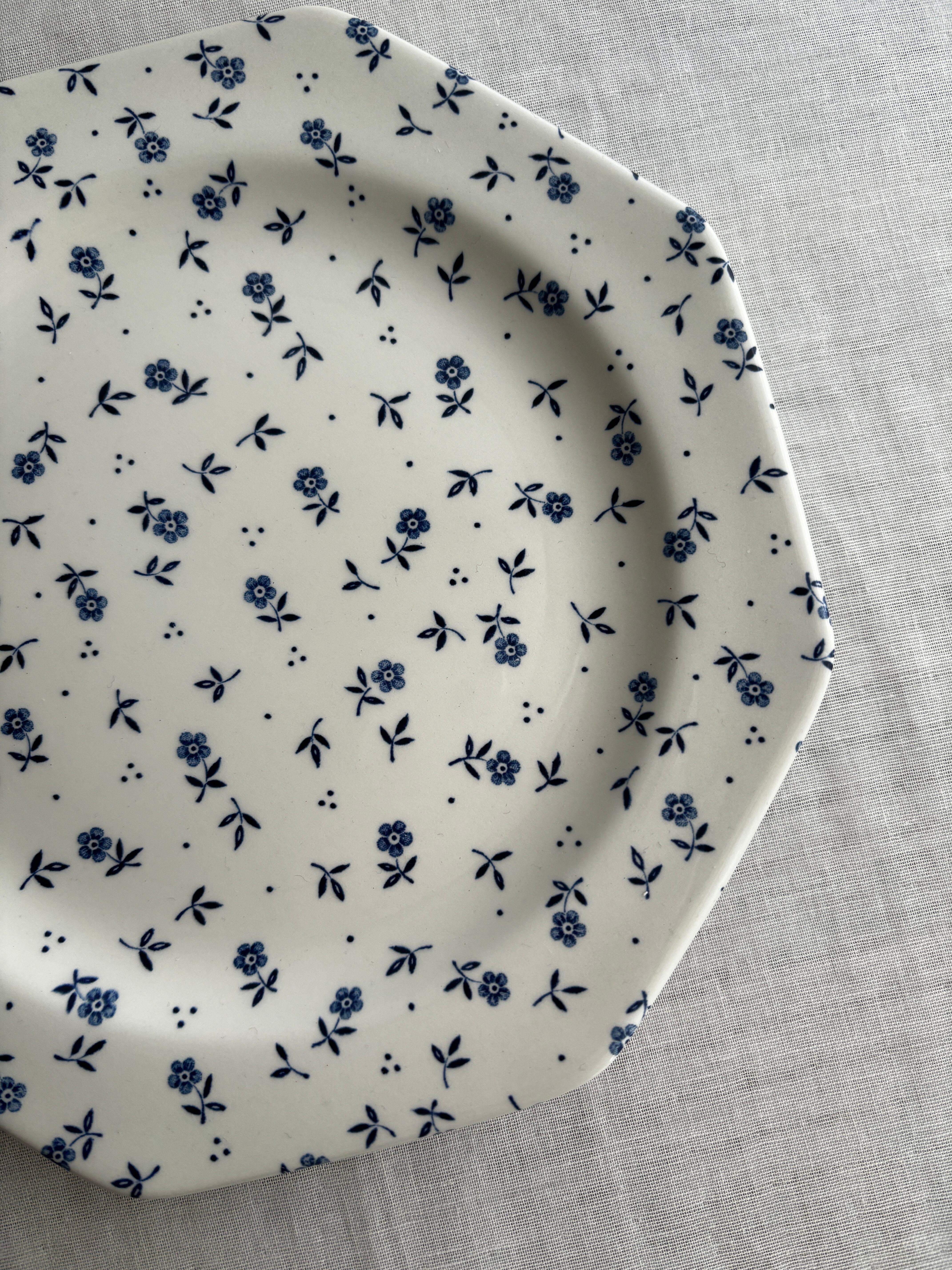 ブルーの小花柄とオクタゴナルの形がとても素敵な一枚です。