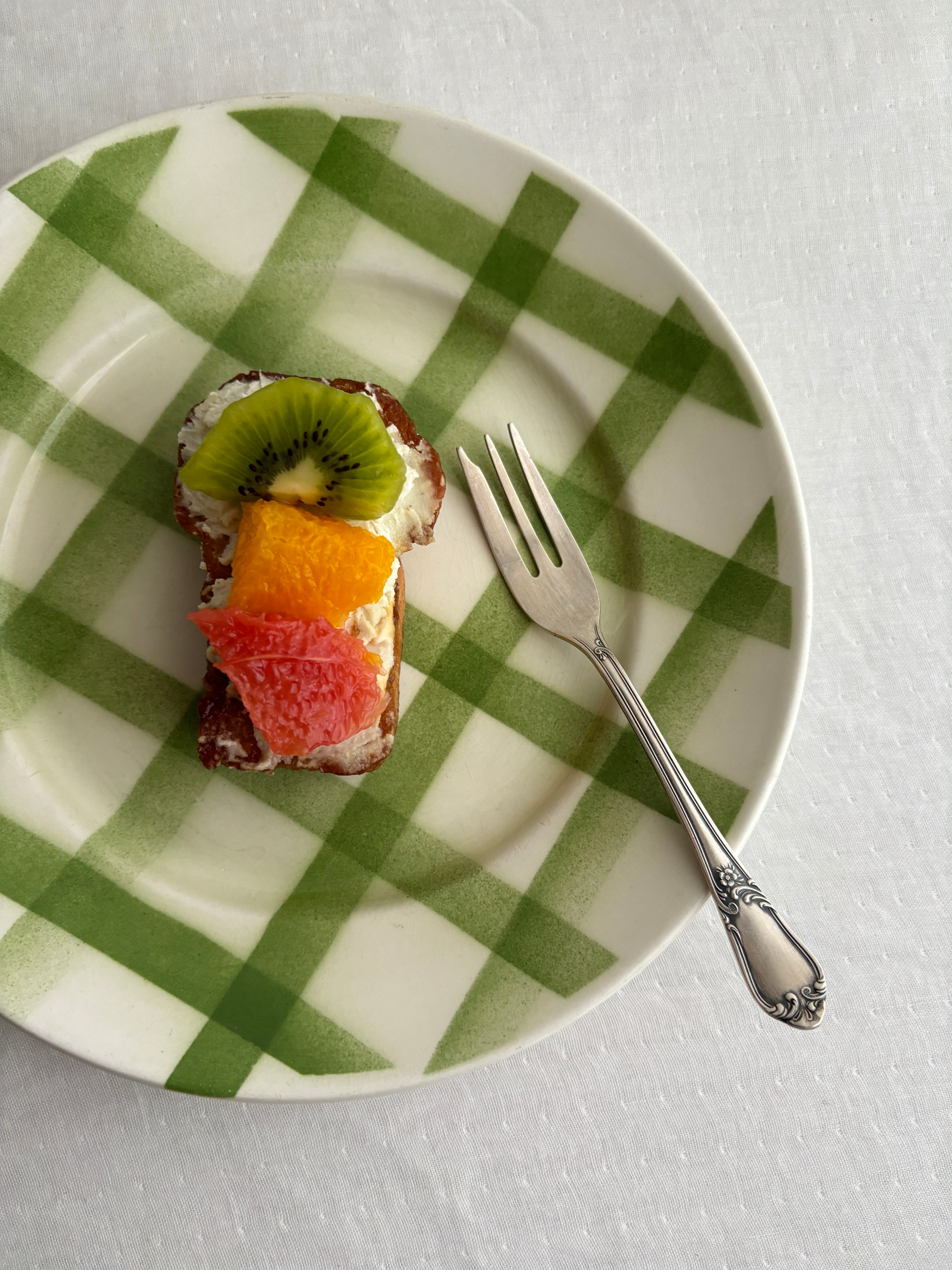 チェック柄がとても可愛く、お皿に乗せるものを引き立たせてくれる1枚です。